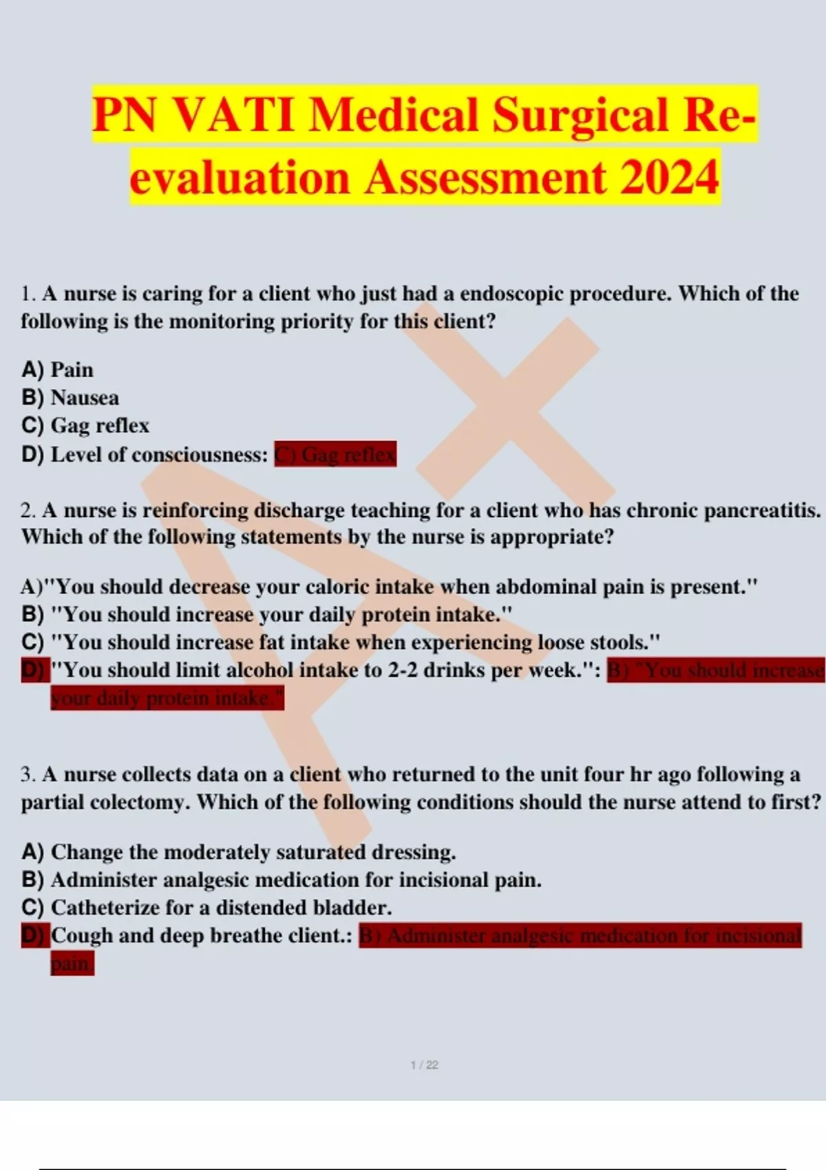 PN VATI Medical Surgical Re-evaluation Assessment 2024.