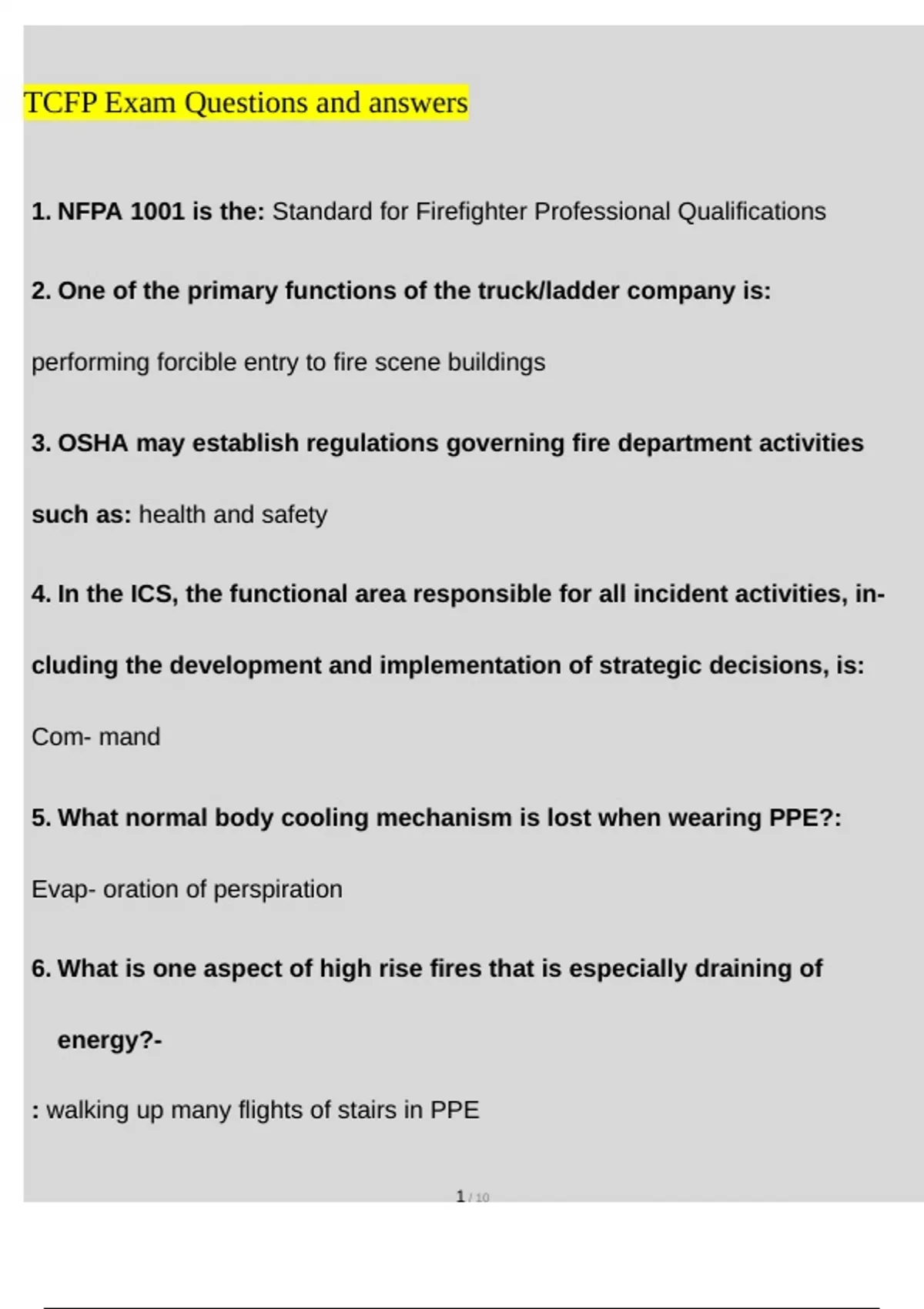 TCFP Exam Questions and Answers (2022/2023) (Verified Answers)