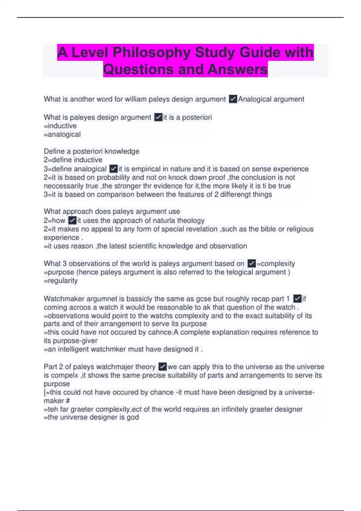 A Level Philosophy Study Guide with Questions and Answers
