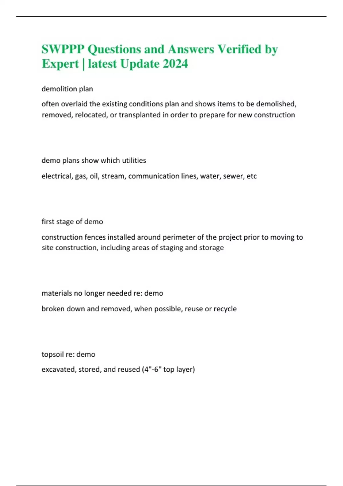 SWPPP Questions and Answers Verified by Expert | latest Update 2024