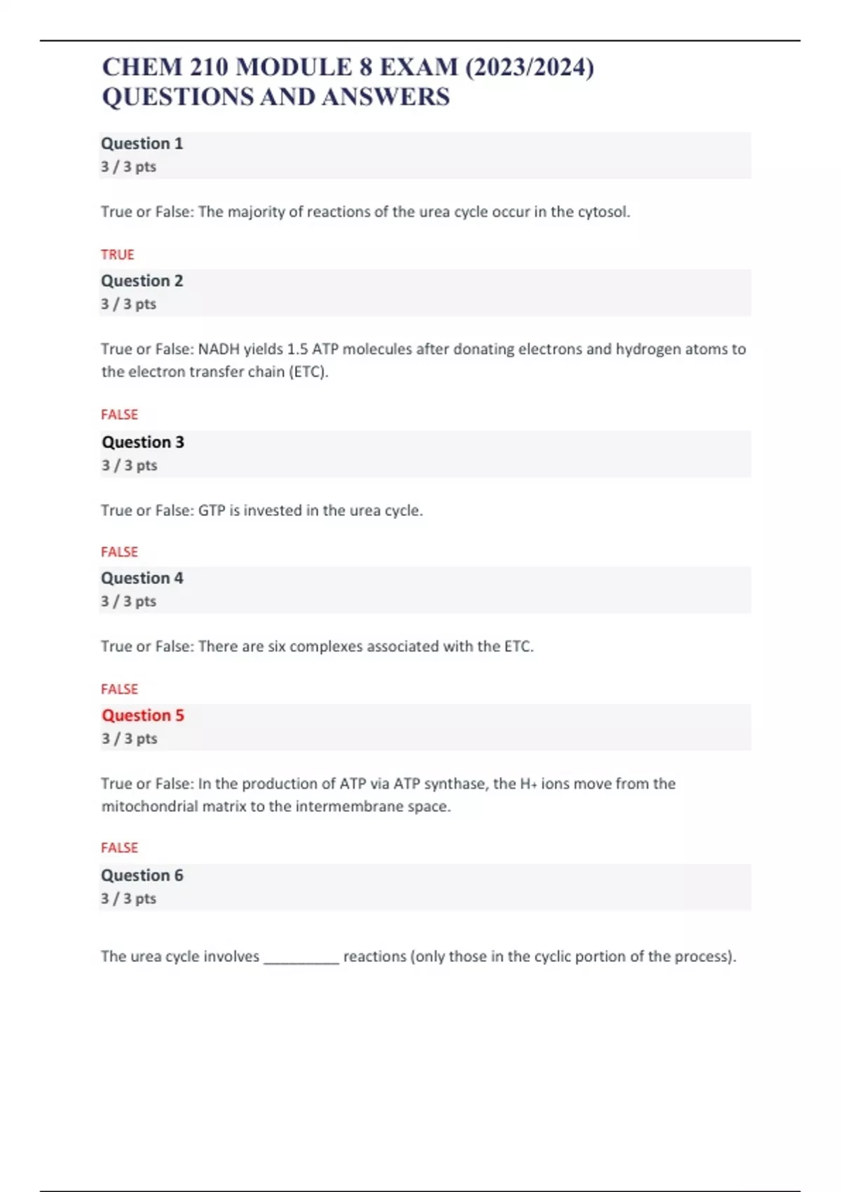 CHEM 210 MODULE 8 EXAM () QUESTIONS AND ANSWERS