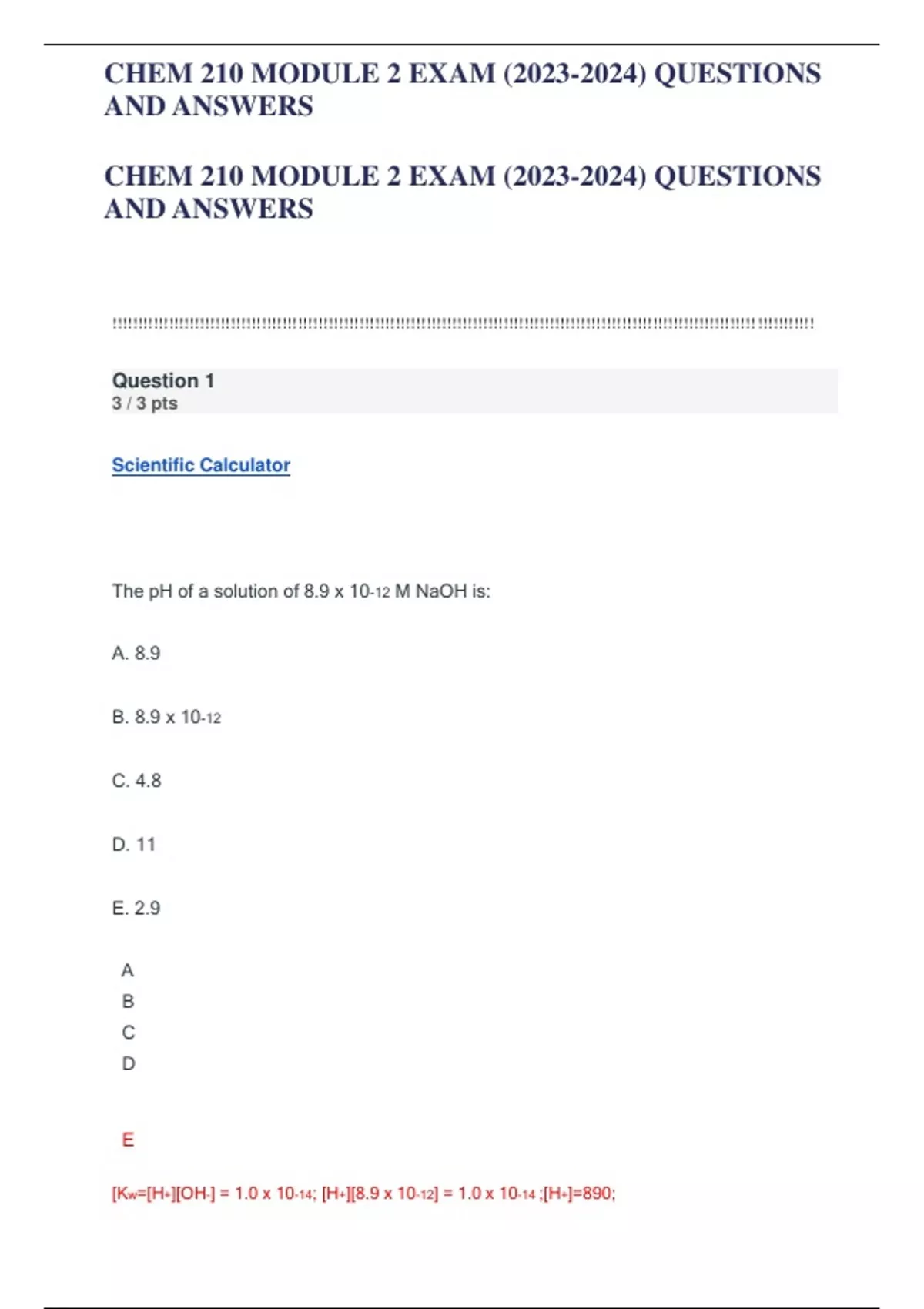 CHEM 210 MODULE 2 EXAM () QUESTIONS AND ANSWERS/CHEM 210 MODULE 2 EXAM () QUESTIONS AND ANSWERS/CHEM 210 MODULE 2 EXAM () QUESTIONS AND ANSWERS
