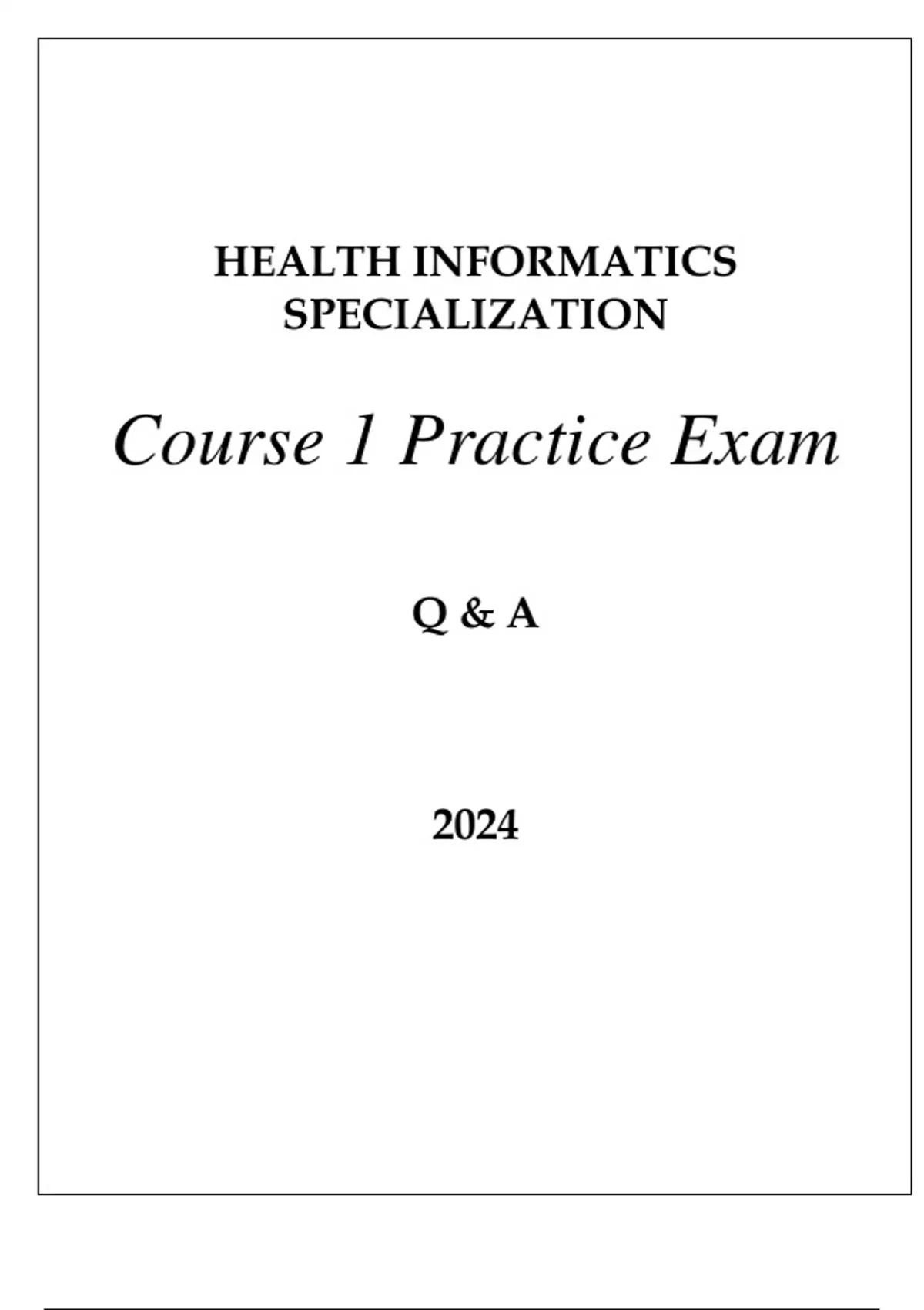 HEALTH INFORMATICS SPECIALIZATION COURSE 1 PRACTICE EXAM Q & A 2024