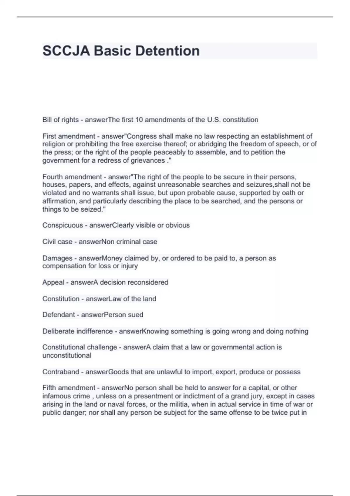 SCCJA Basic Detention Questions and Answers 2024