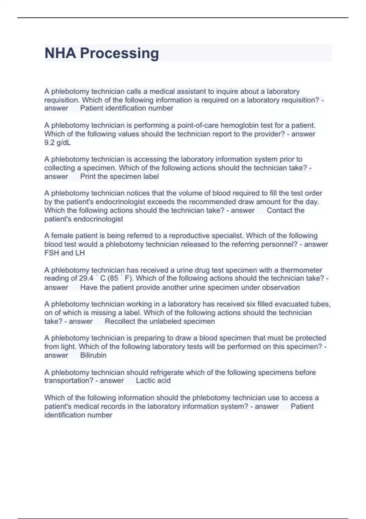 Exam of 2 pages for the course Nha phlebotomy at Nha phlebotomy (NHA Processing)