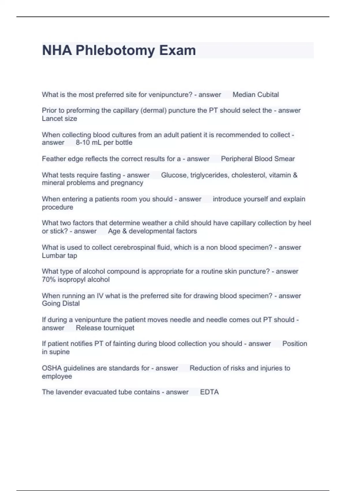 NHA Phlebotomy Exam Questions and Answers 100% Correct