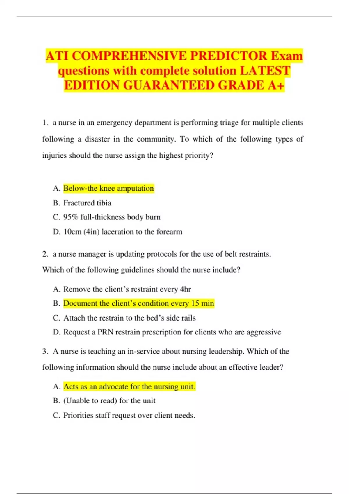 ATI COMPREHENSIVE PREDICTOR Exam questions with complete solution LATEST EDITION GUARANTEED GRADE A+