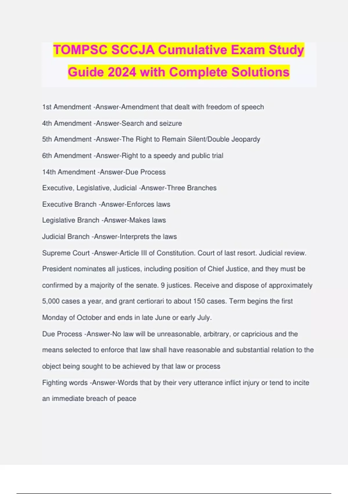 TOMPSC SCCJA Cumulative Exam Study Guide 2024 with Complete Solutions