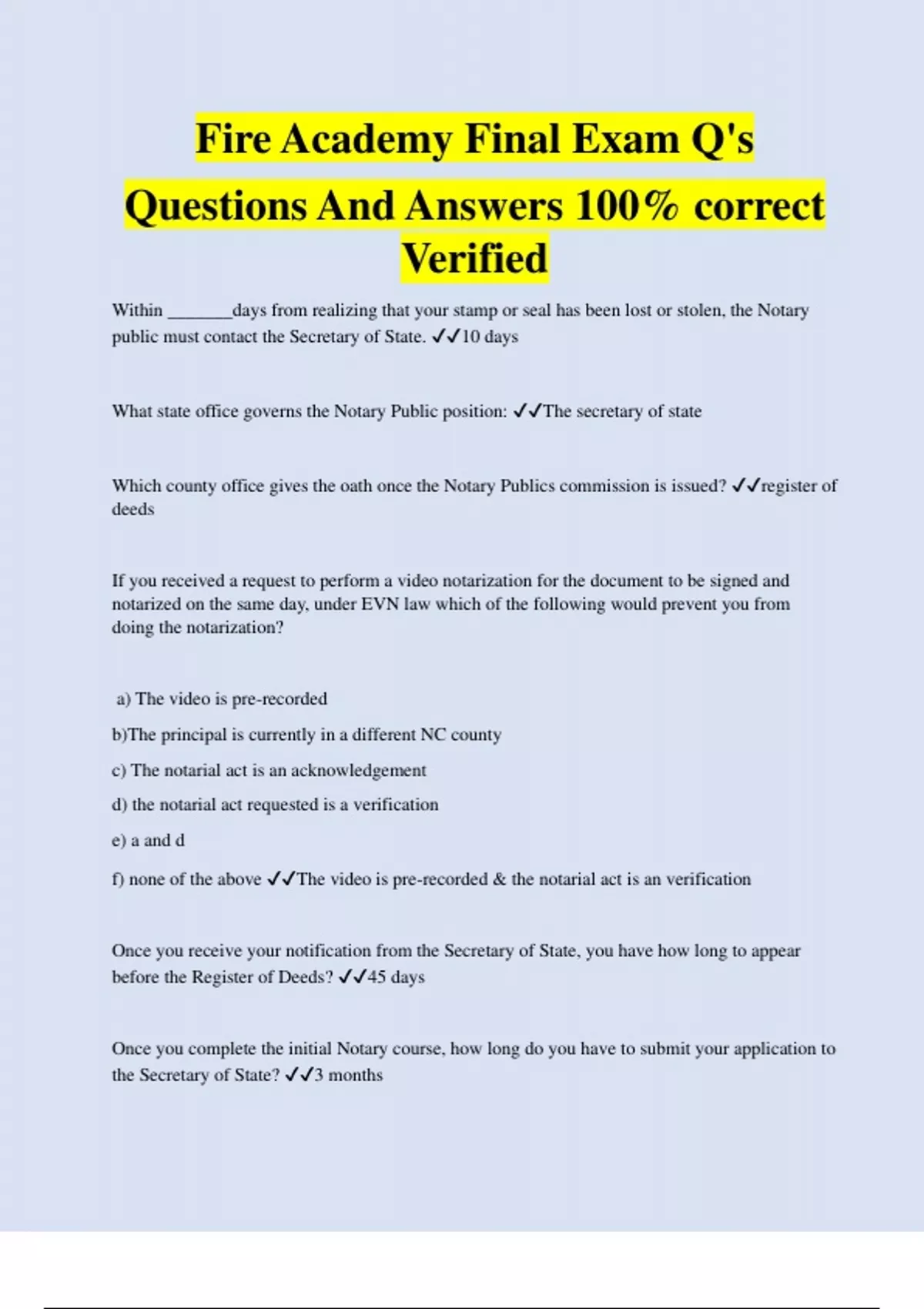 Fire Academy Final Exam Q's Questions And Answers 100% correct Verified