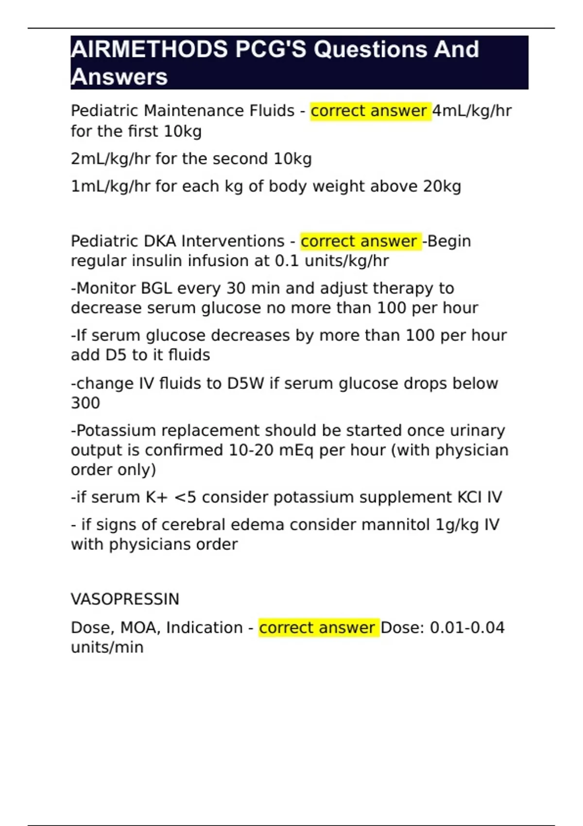 AIRMETHODS PCG'S Questions And Answers