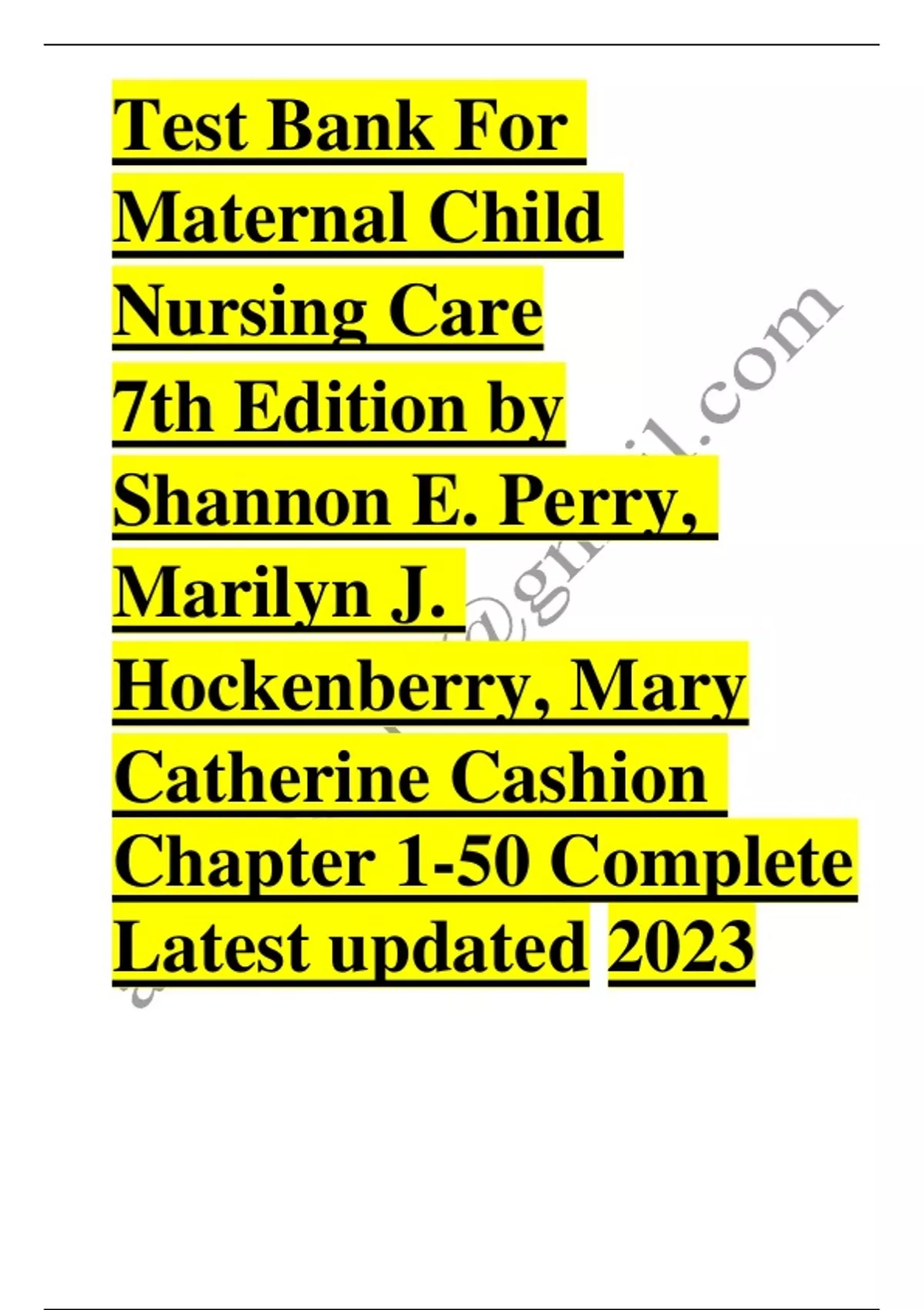 Test bank for maternal child nursing care 7th edition by shannon_e. perry marilyn j. hockenberry mary catherine cashion chapter 1_50 / All Chapters Updated 2024 / Rated A+
