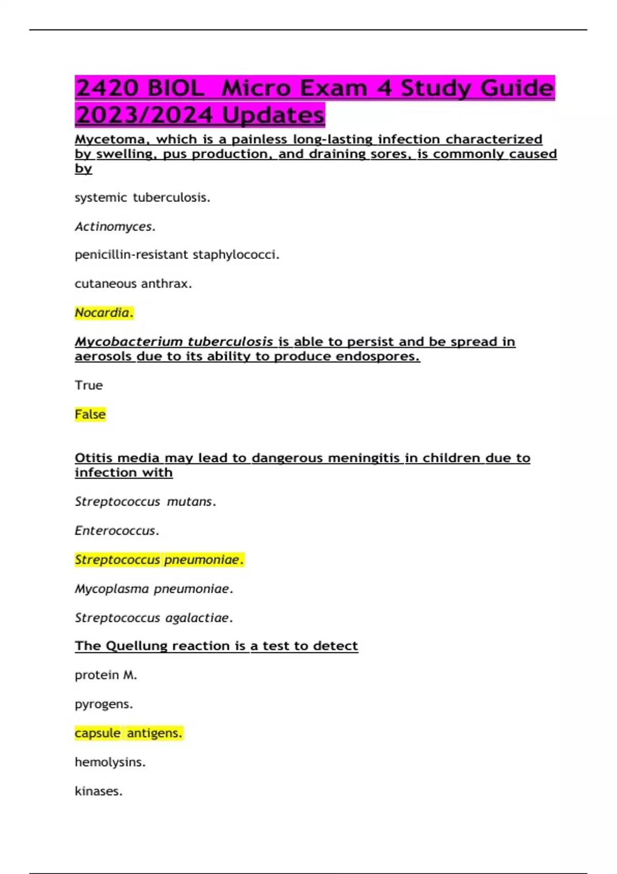 2420 BIOL Micro Exam 4 Study Guide 2023/2024 Updates