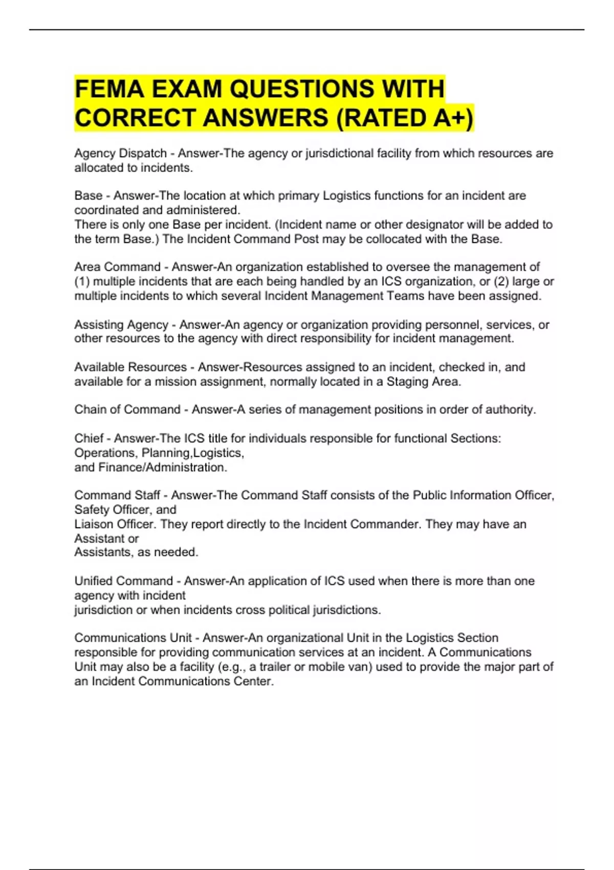 FEMA EXAM QUESTIONS WITH CORRECT ANSWERS (RATED A+)