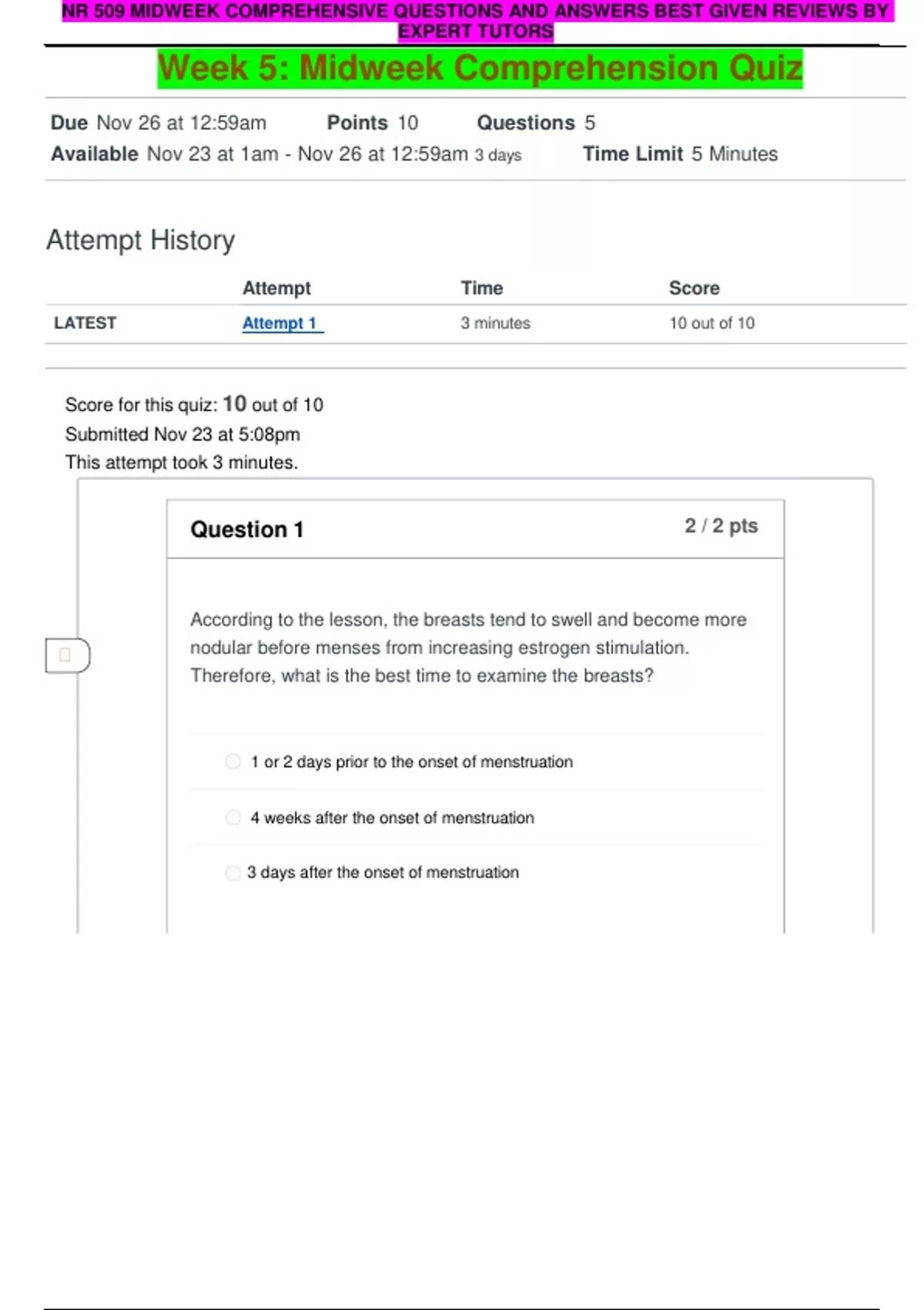 NR 509 MIDWEEK COMPREHENSIVE QUESTIONS AND ANSWERS BEST GIVEN REVIEWS BY EXPERT TUTORS