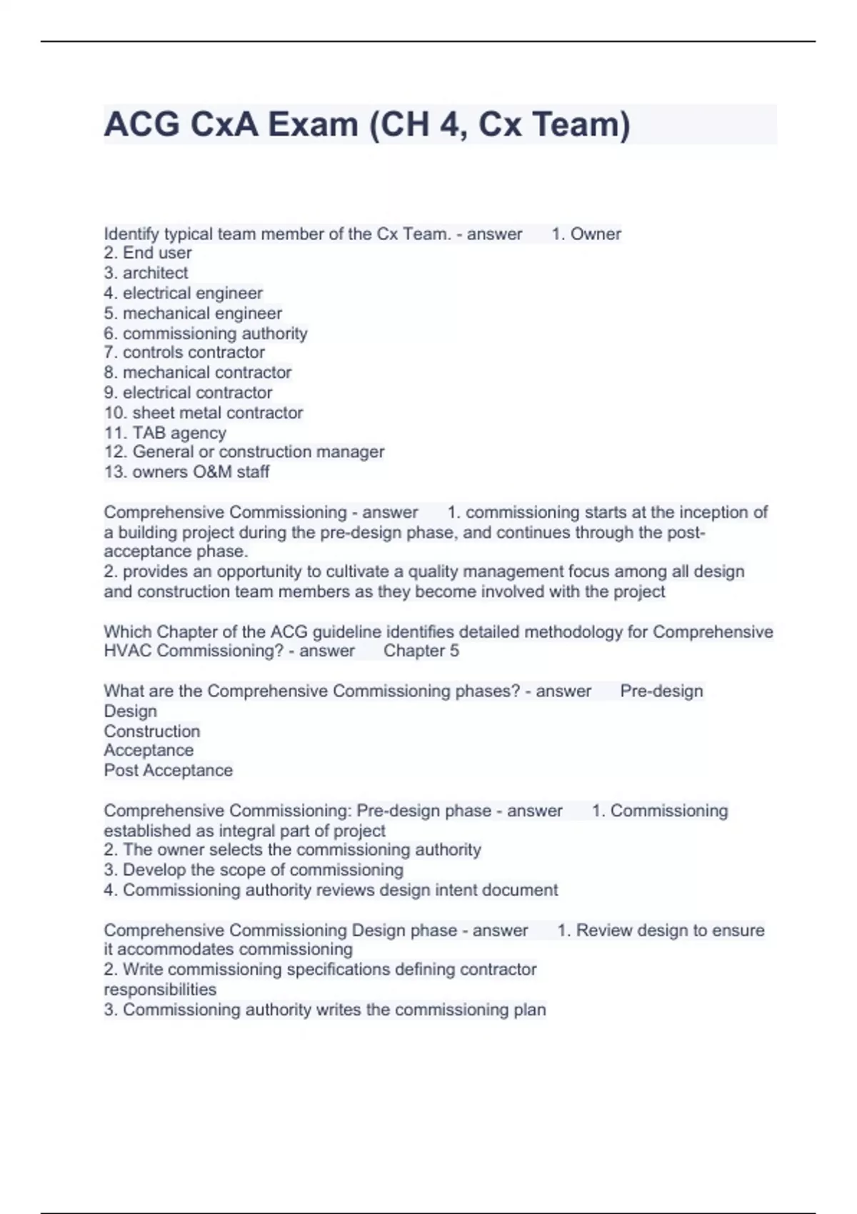ACG CxA Exam (CH 4, Cx Team) QUESTIONS AND ANSWERS 2024