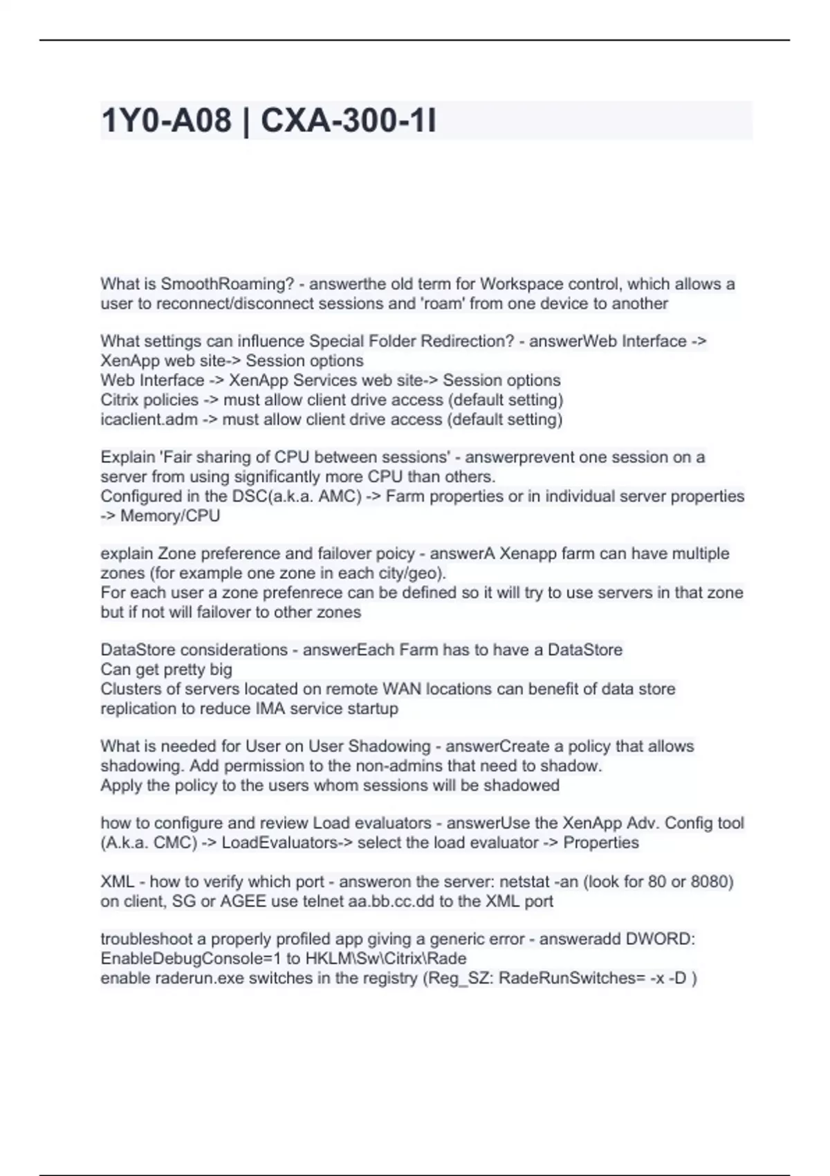 Exam of 8 pages for the course cxa at cxa (1Y0-A08 -CXA-300-1I)