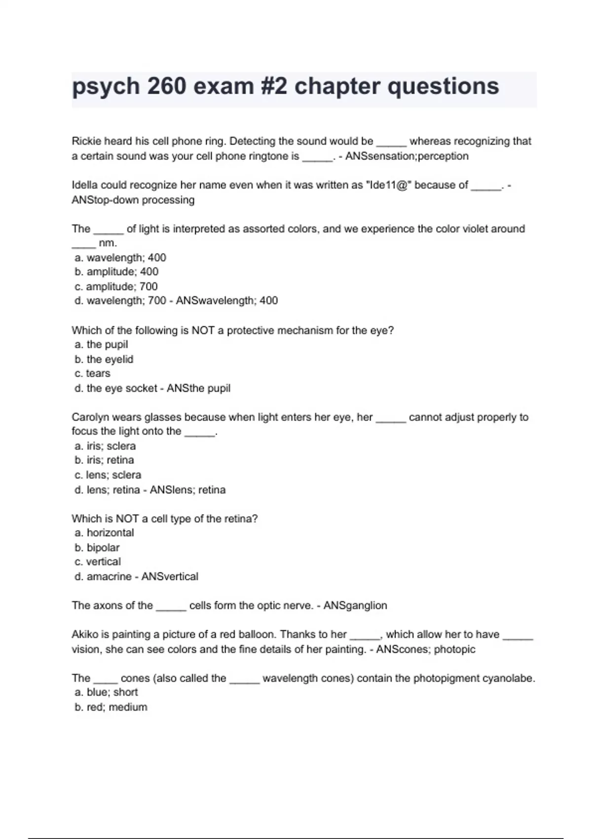d. lens; retina - ANSlens; retina