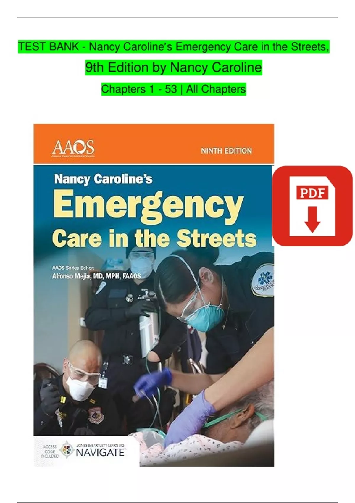 TEST BANK For Nancy Caroline’s Emergency Care in the Streets, 9th Edition by Nancy Caroline, Verified Chapters 1 - 53, Complete Newest Version