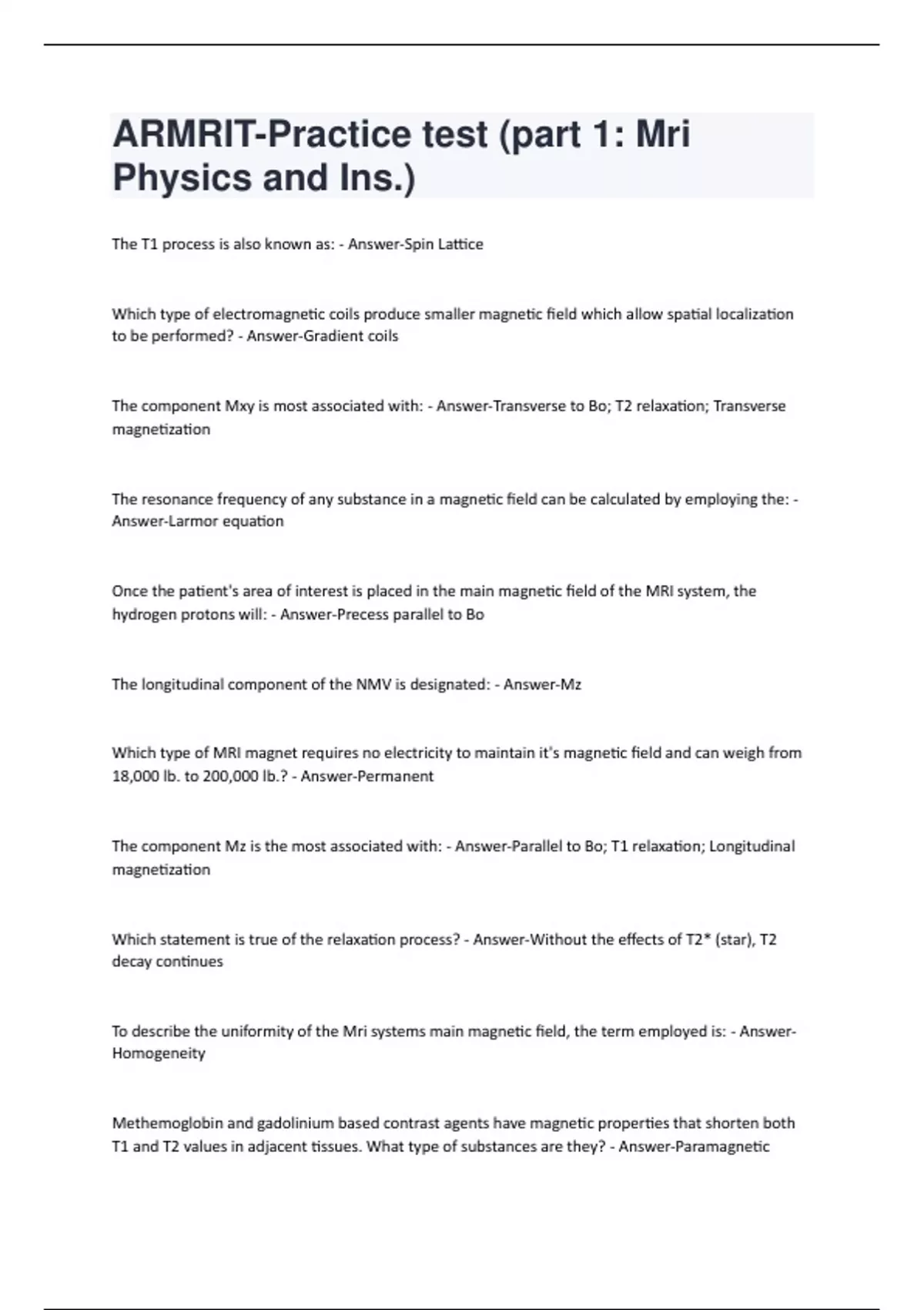 ARMRIT-Practice test (part 1: Mri Physics and Ins.)Questions and Answers with complete
