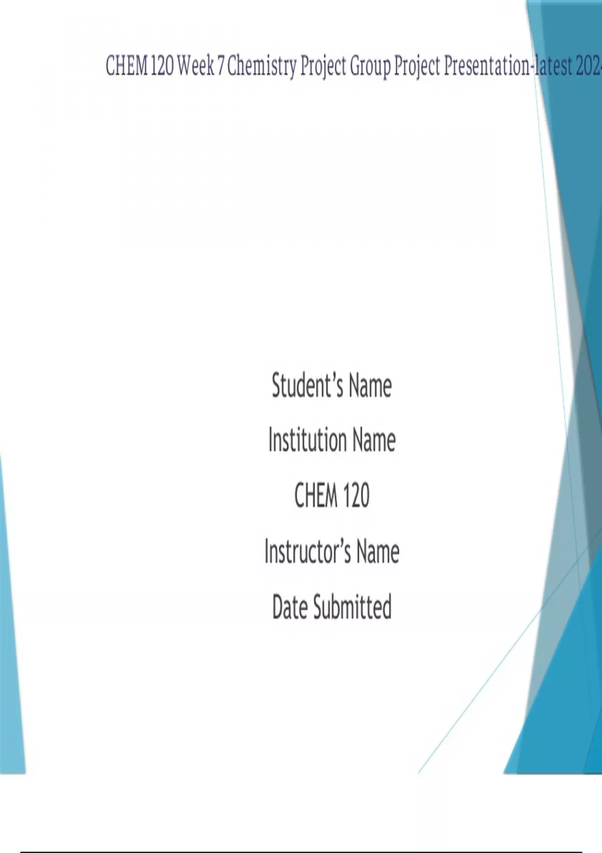 CHEM 120 Week 7 Chemistry Project Group Project Presentation-latest 2024