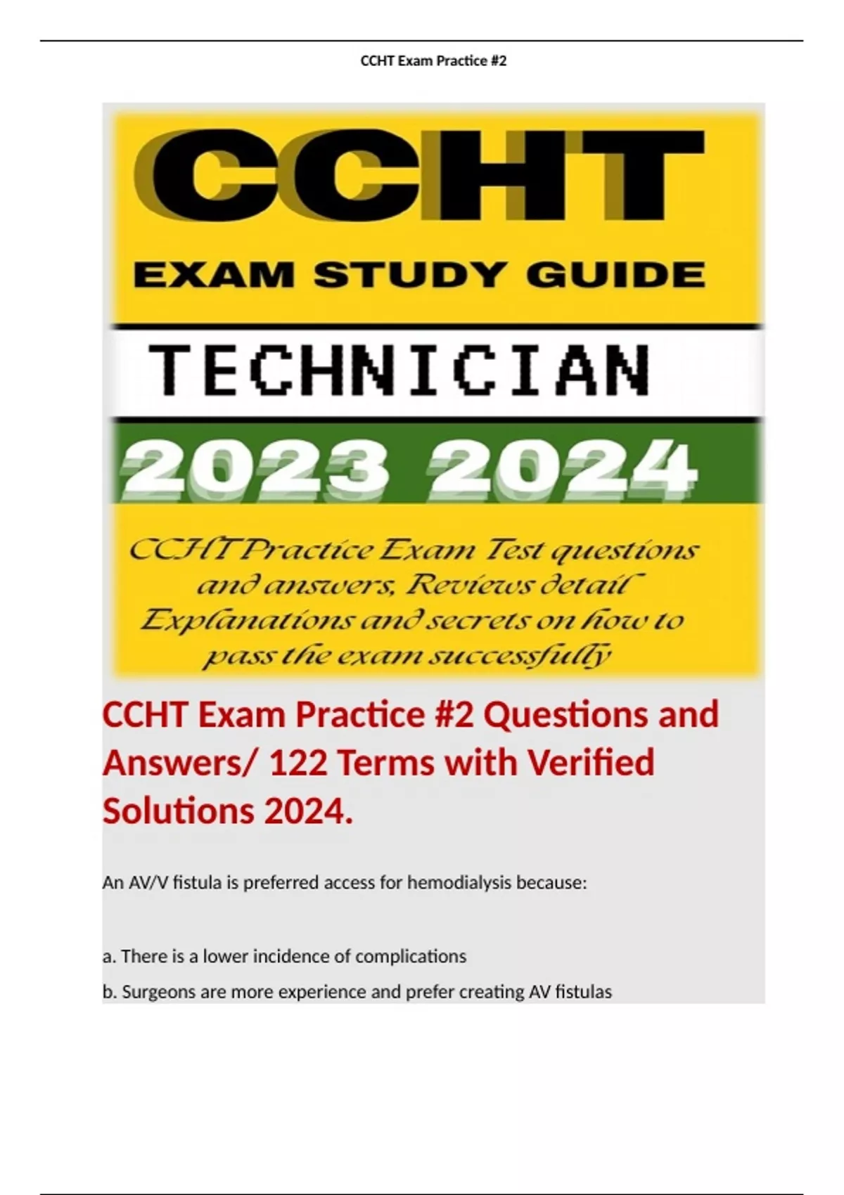 CCHT Exam Practice #2 Questions and