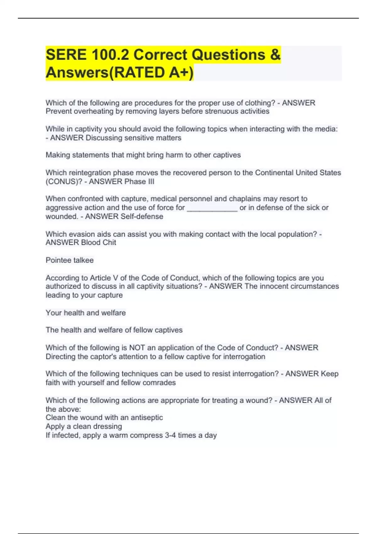 SERE 100.2 Correct Questions & Answers(RATED A+)