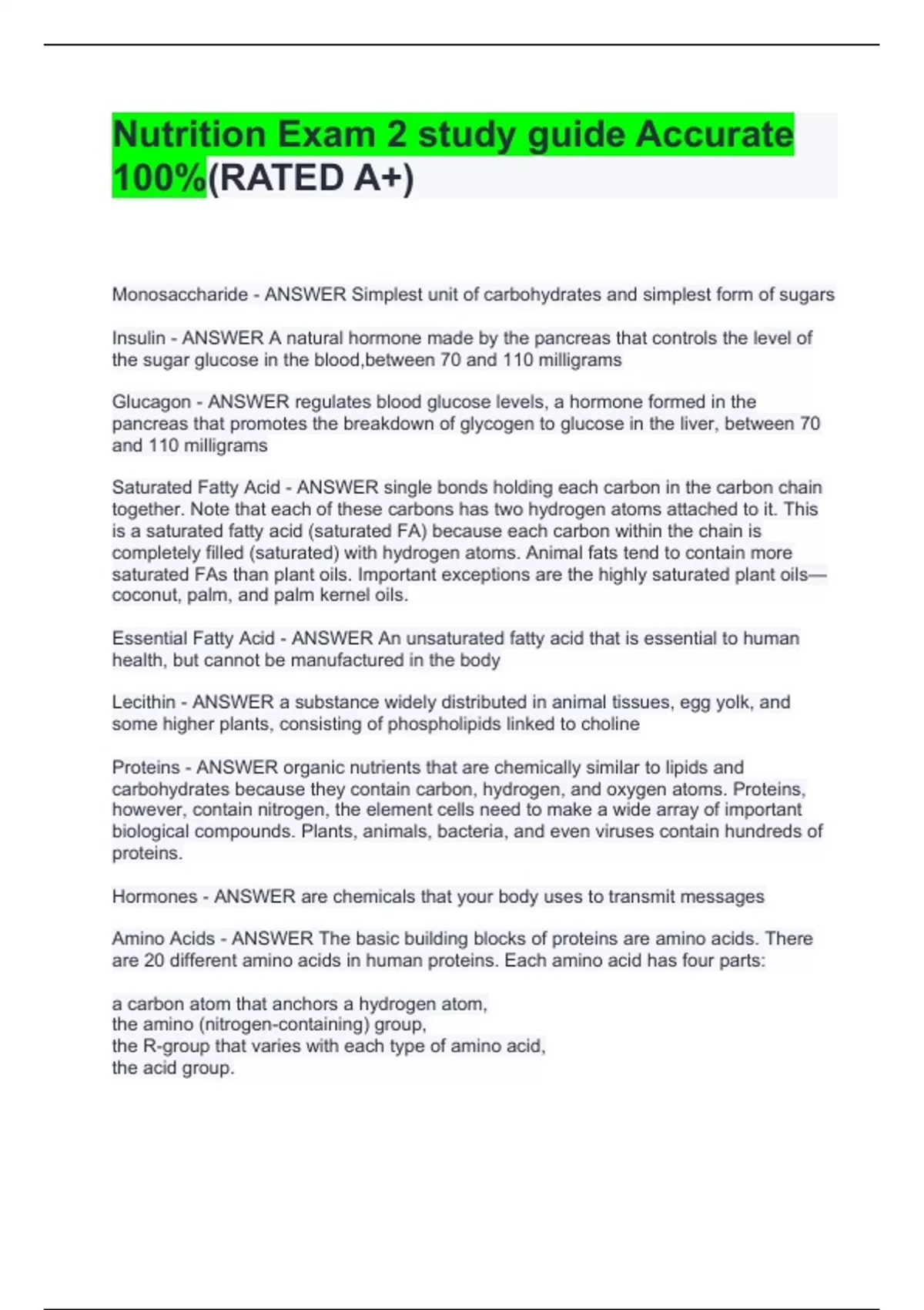 Nutrition Exam 2 study guide Accurate 100%(RATED A+)