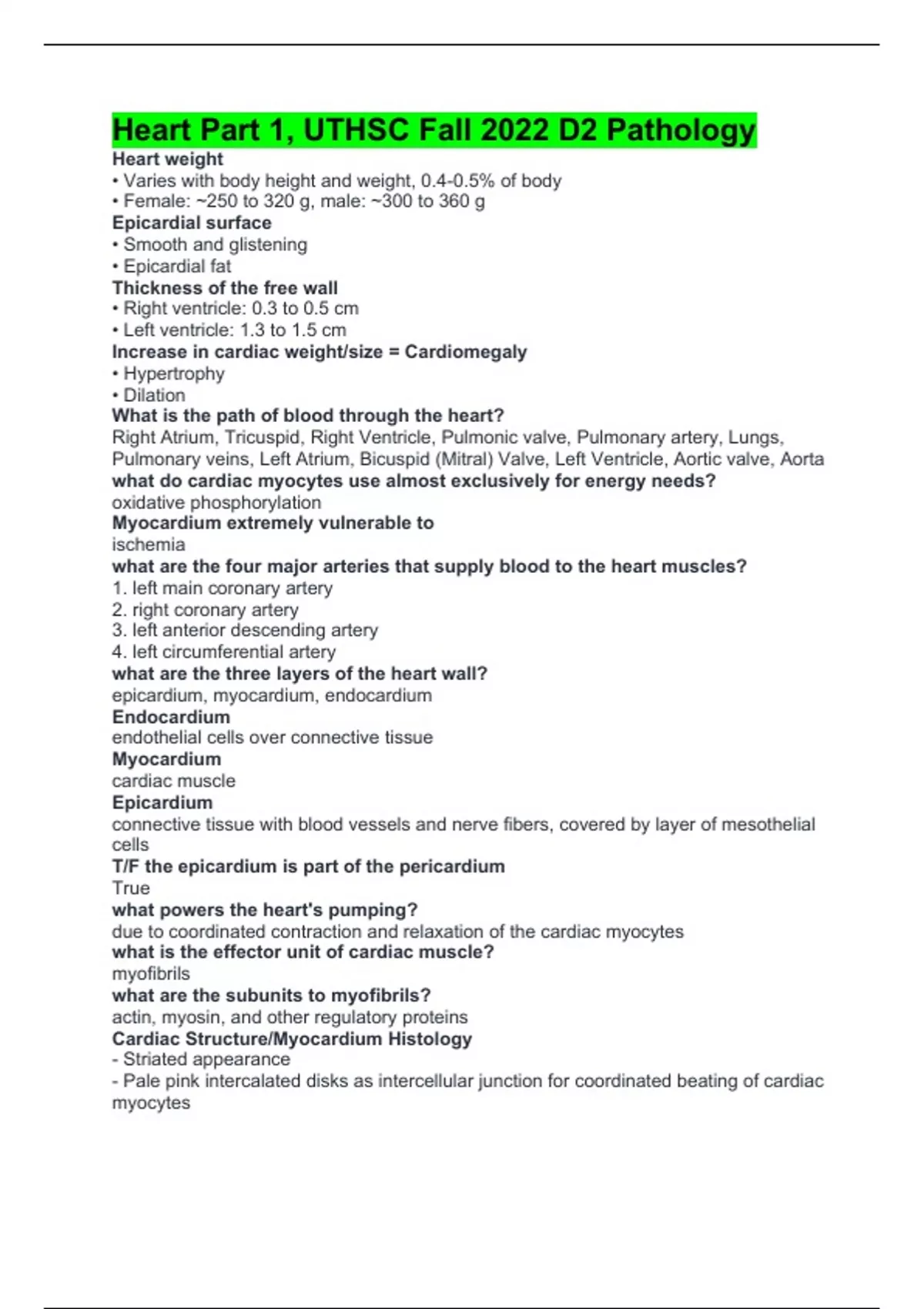Heart Part 1, UTHSC Fall 2022 D2 Pathology