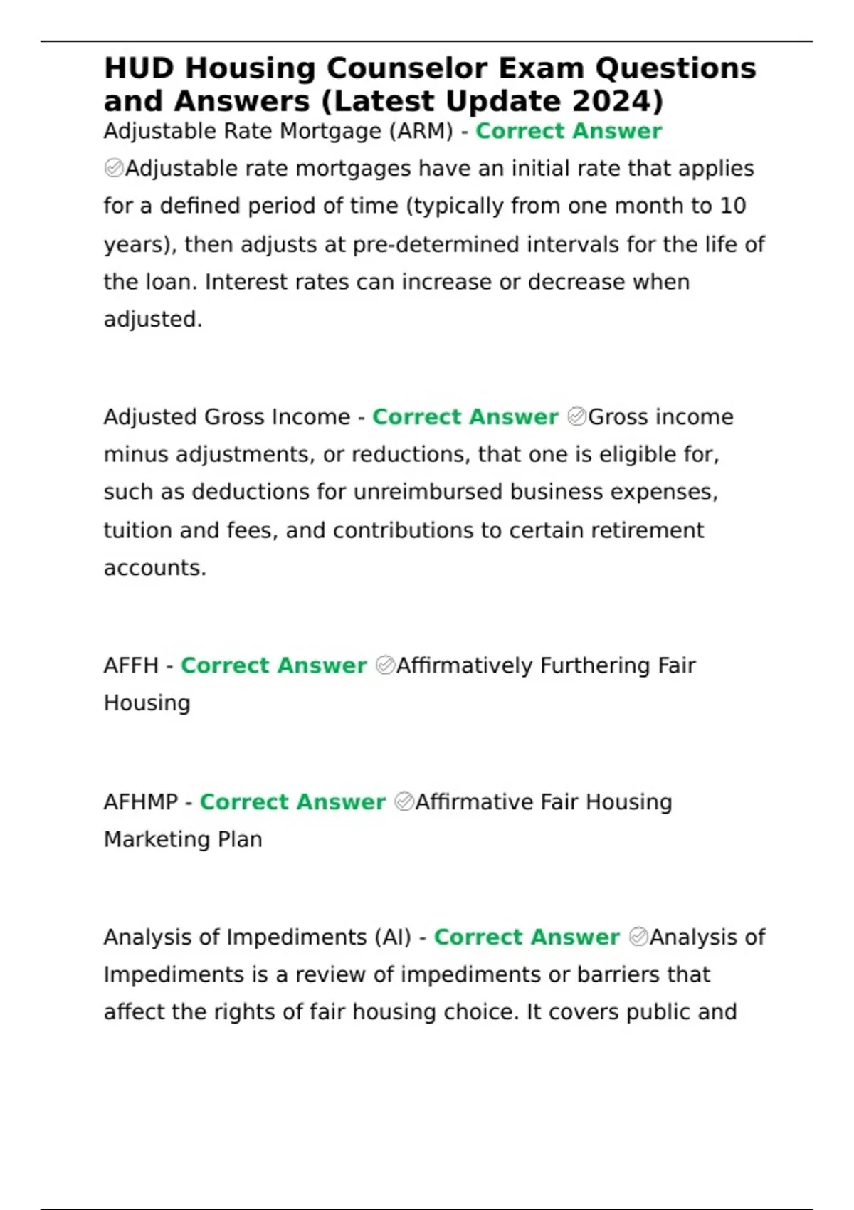 HUD Housing Counselor Exam Questions and Answers (Latest Update 2024)