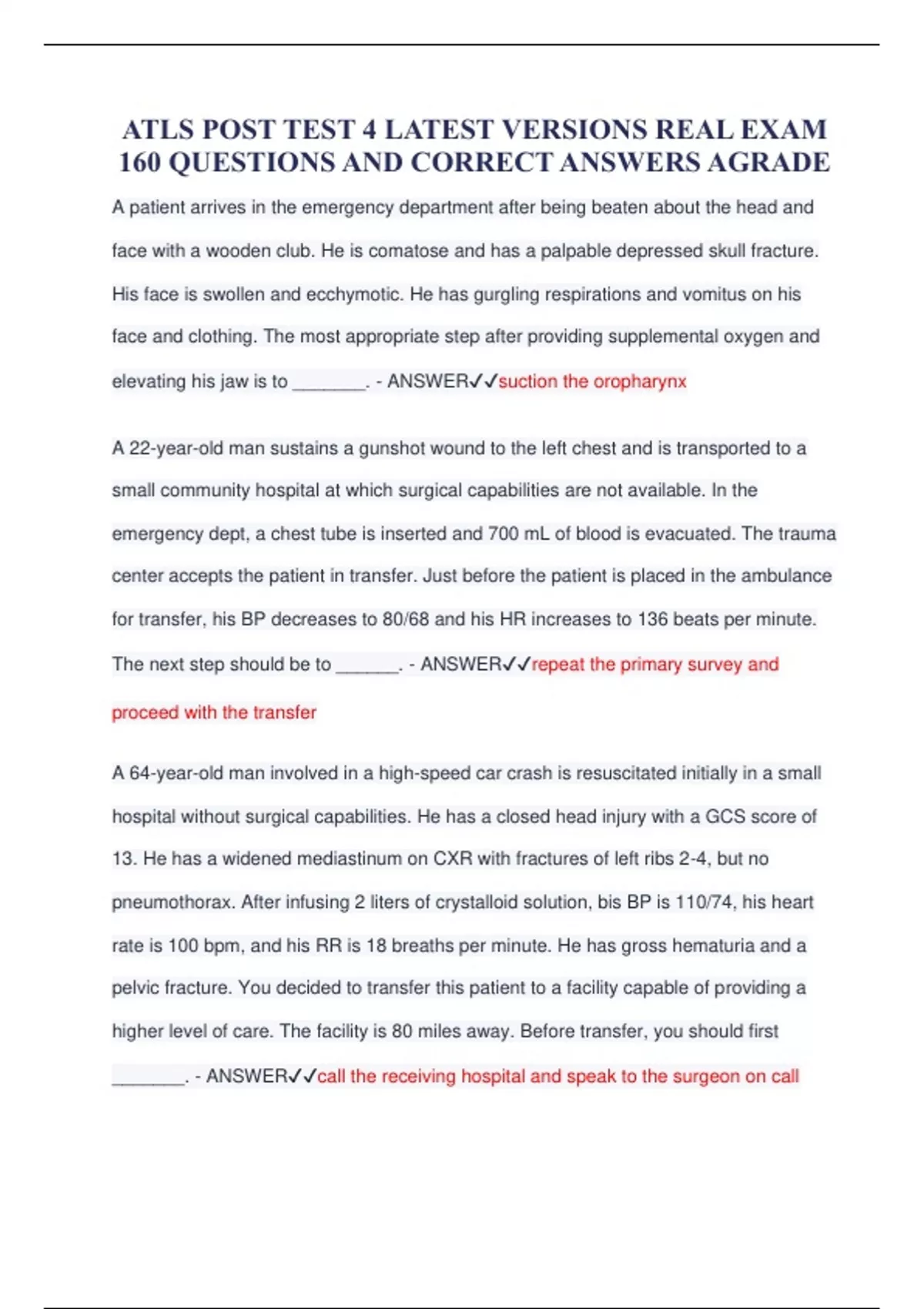 ATLS POST TEST 4 LATEST VERSIONS REAL EXAM 160 QUESTIONS AND CORRECT ANSWERS |AGRADE