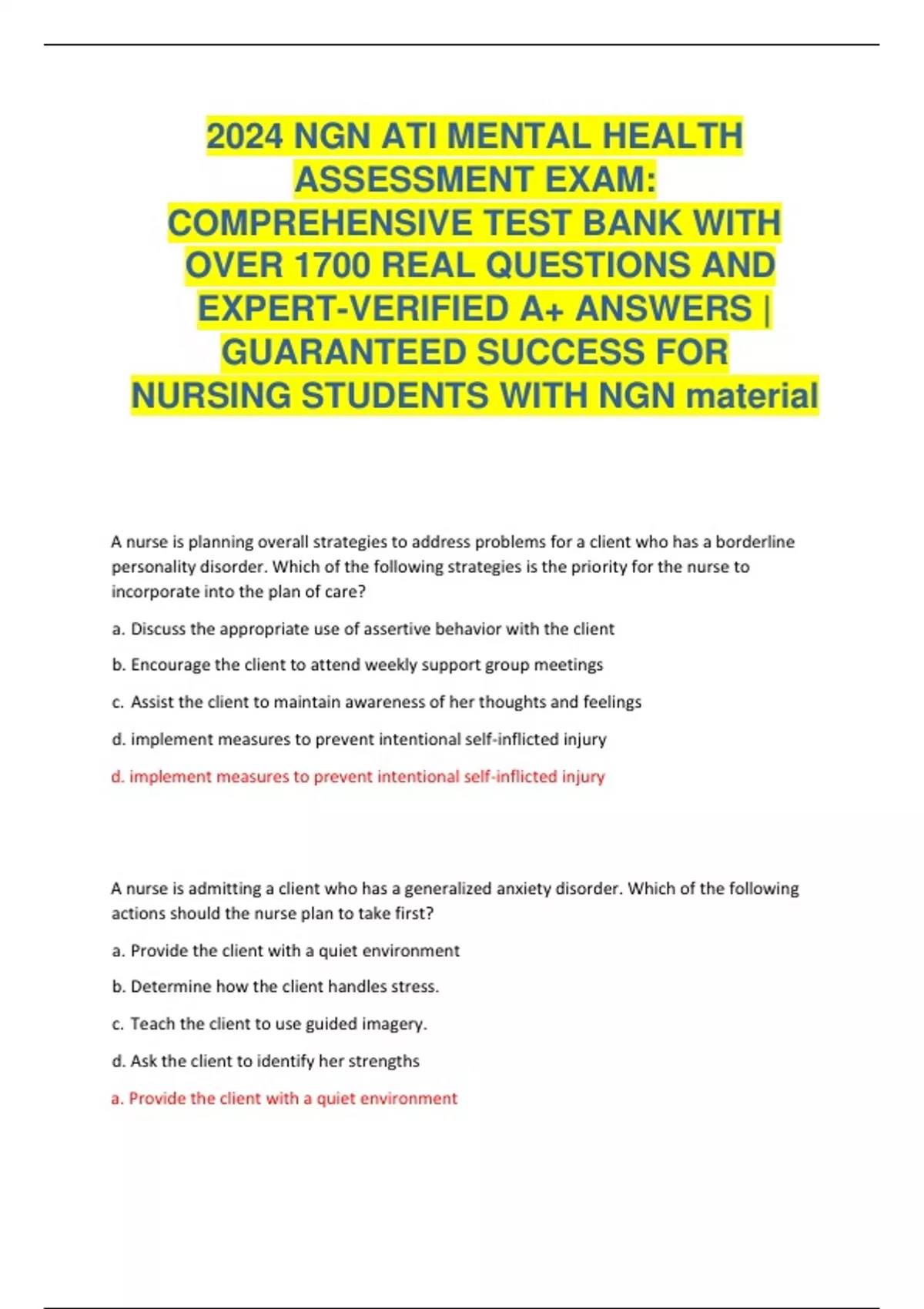 2024 NGN ATI MENTAL HEALTH ASSESSMENT EXAM