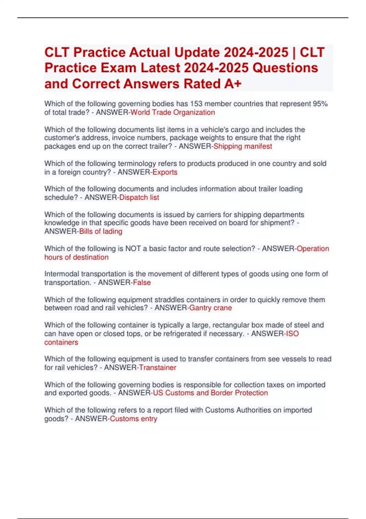 CLT Practice Actual Update | CLT Practice Exam Latest Questions and Correct Answers Rated A+