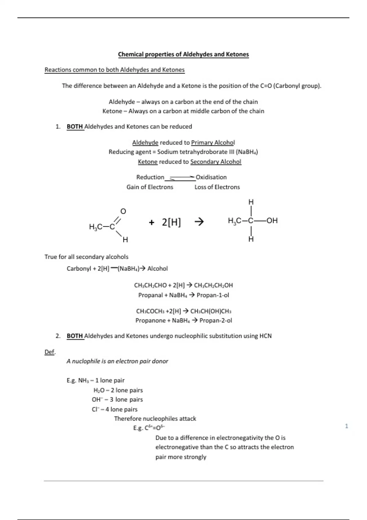 1. BOTH Aldehydes and Ketones can be reduced