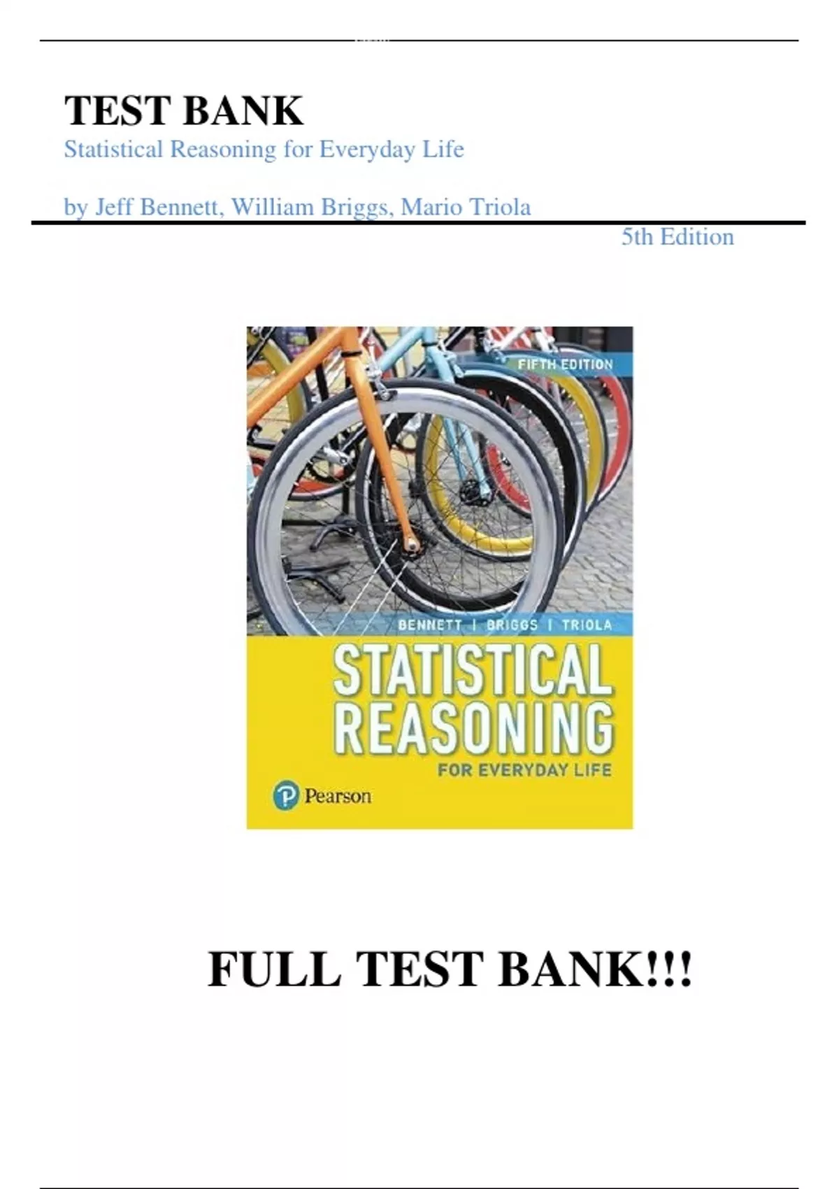 Test Bank for Statistical Reasoning for Everyday Life, 5th edition by Jeff Bennett, William Briggs, Mario Triola||All Chapters||Complete Guide A+