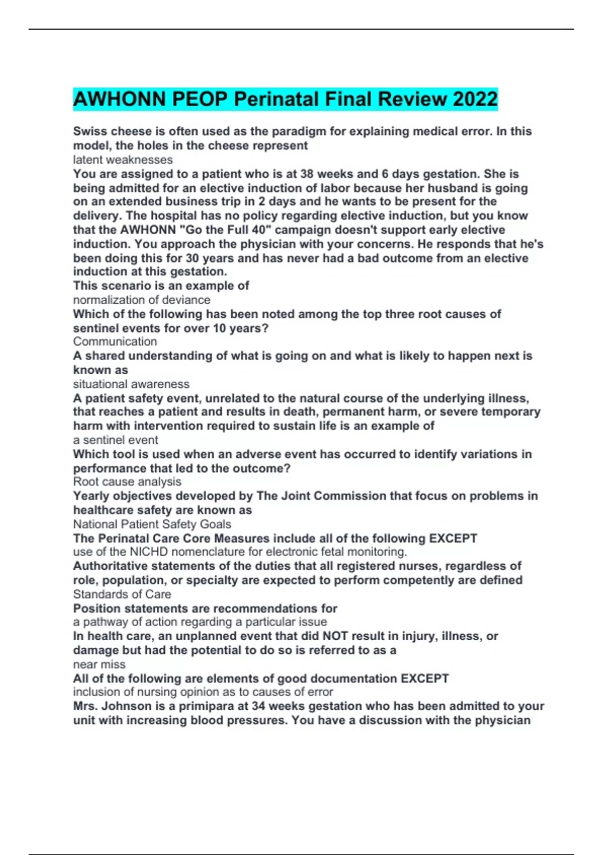 AWHONN PEOP Perinatal Final Review 2022