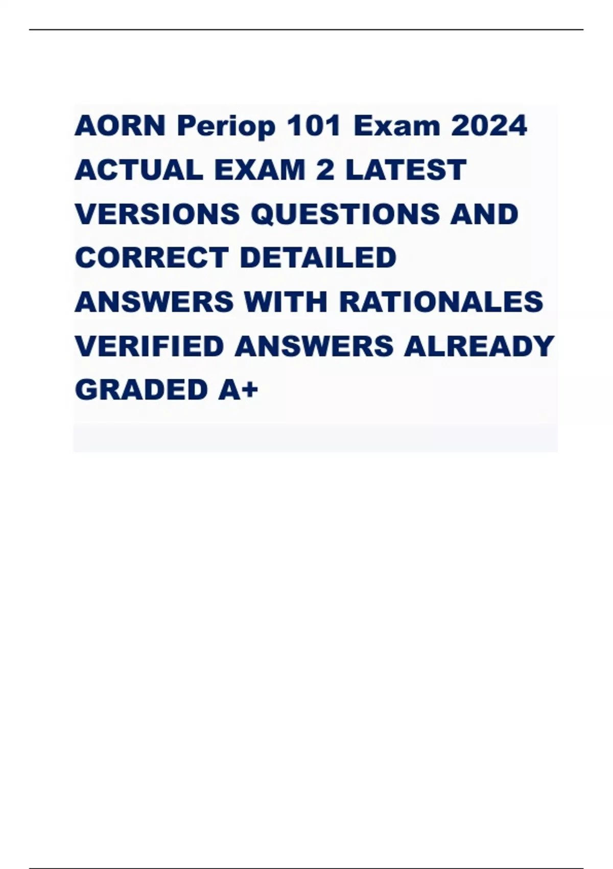 AORN Periop 101 Exam 2024 ACTUAL EXAM 2 LATEST VERSIONS QUESTIONS AND CORRECT DETAILED ANSWERS WITH RATIONALES VERIFIED ANSWERS ALREADY GRADED A+