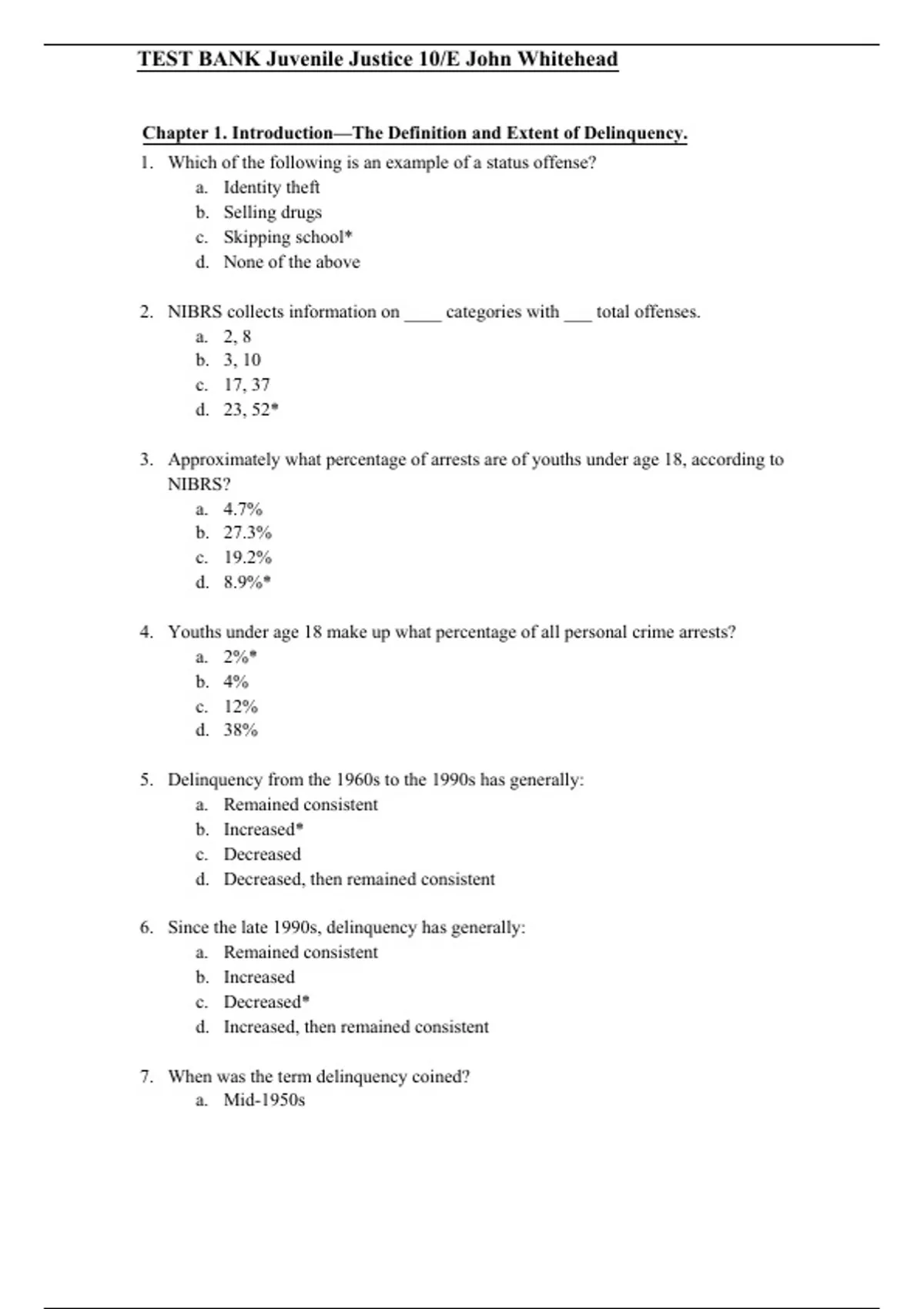 TEST BANK Juvenile Justice 10/E John Whitehead