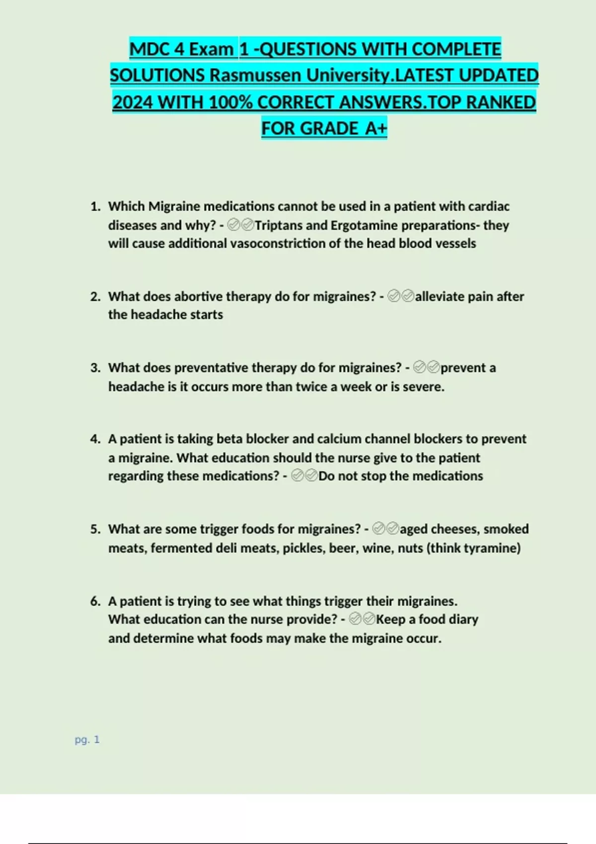 MDC 4 Exam 1 -QUESTIONS WITH COMPLETE SOLUTIONS Rasmussen University. LATEST UPDATED 2024 WITH 100% CORRECT ANSWERS. TOP RANKED FOR GRADE A+