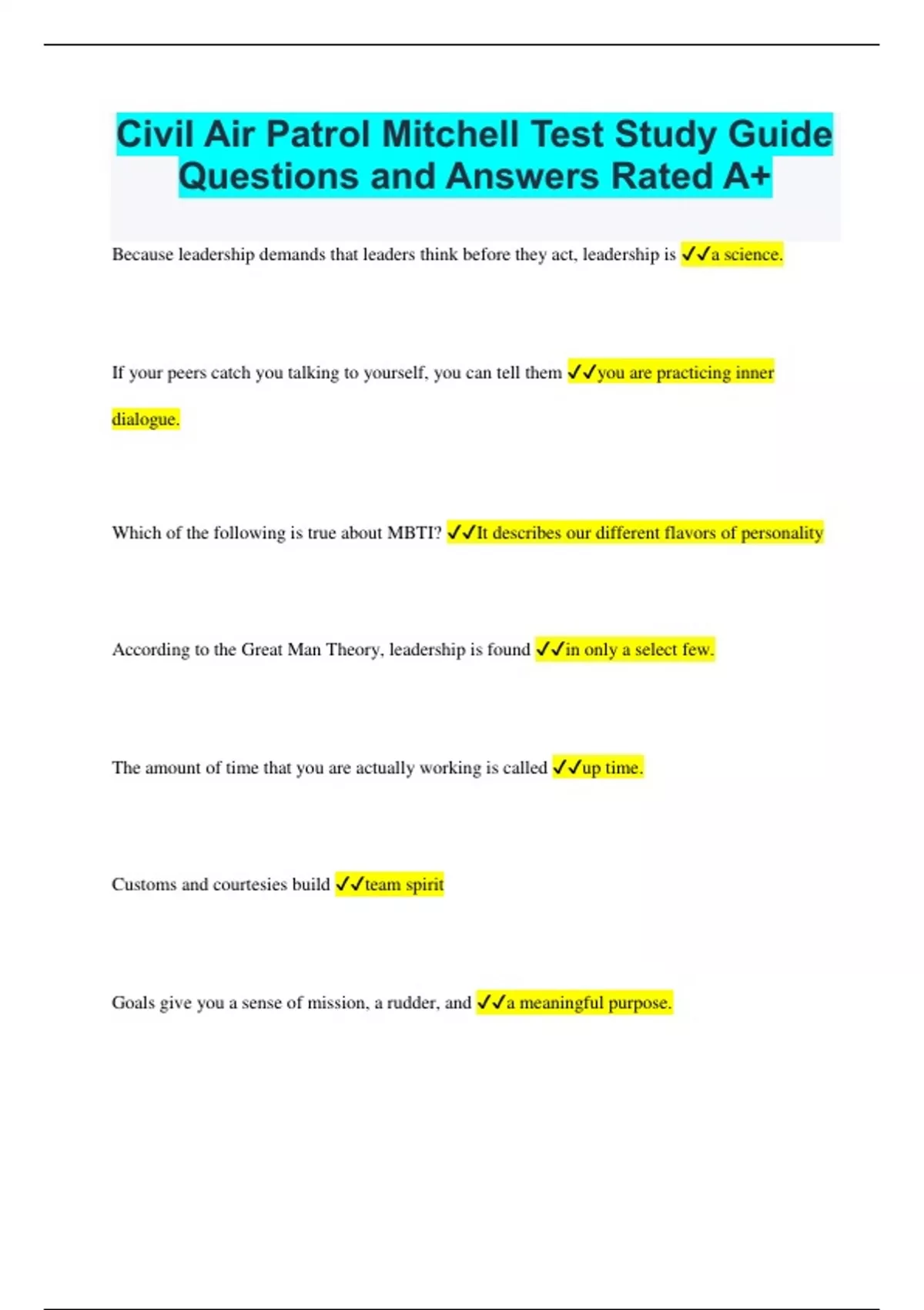 Civil Air Patrol Mitchell Test Study Guide Questions and Answers Rated A+