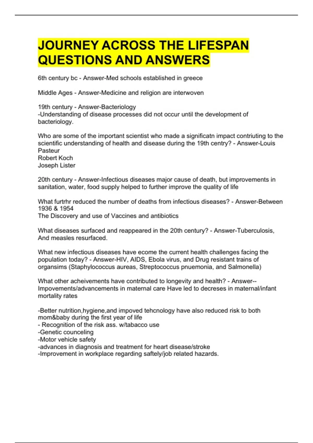 JOURNEY ACROSS THE LIFESPAN QUESTIONS AND ANSWERS