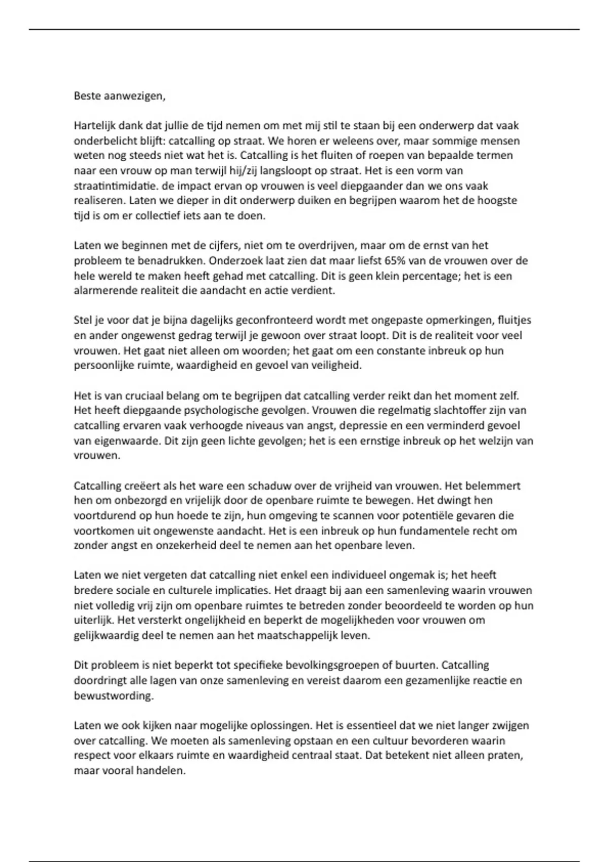 over catcalling. We moeten als samenleving opstaan en een cultuur bevorderen waarin