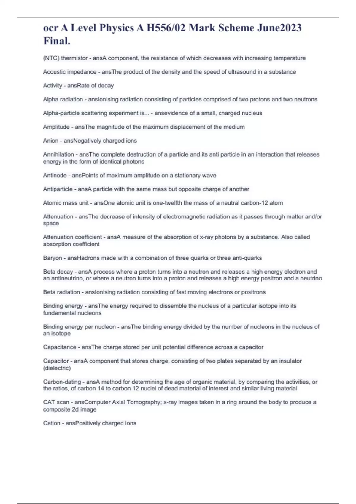 ocr A Level Physics A H556/02 Mark Scheme June2023 Final.