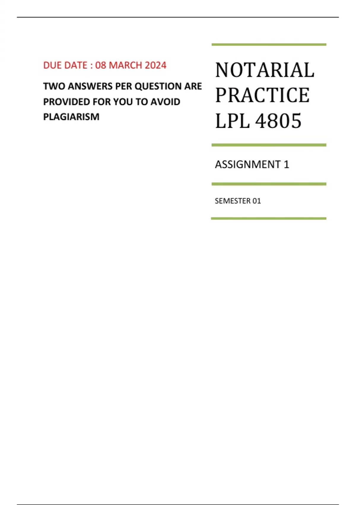 Notarial practice Lpl4805 due 8 Mar 2024 assignment 1