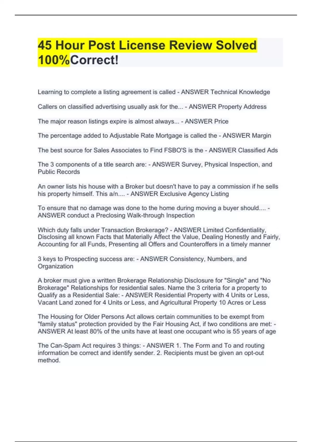 45 Hour Post License Review Solved 100%Correct!