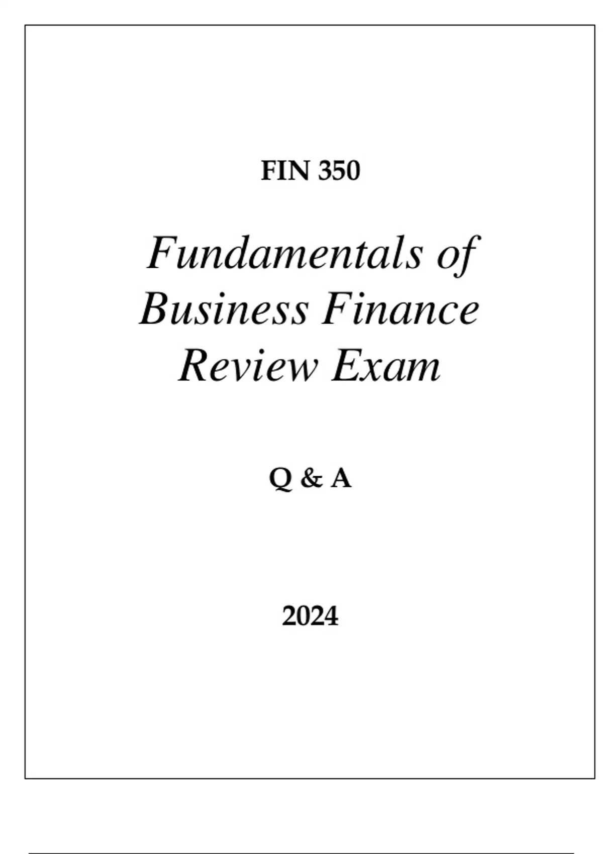 FIN 350 FUNDAMENTALS OF BUSINESS FINANCE REVIEW EXAM Q & A 2024FIN 350 FUNDAMENTALS OF BUSINESS FINANCE REVIEW EXAM Q & A 2024FIN 350 FUNDAMENTALS OF BUSINESS FINANCE REVIEW EXAM Q & A 2024