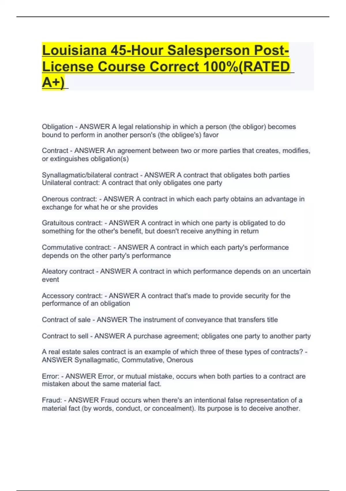 Louisiana 45-Hour Salesperson Post-License Course Correct 100%(RATED A+)