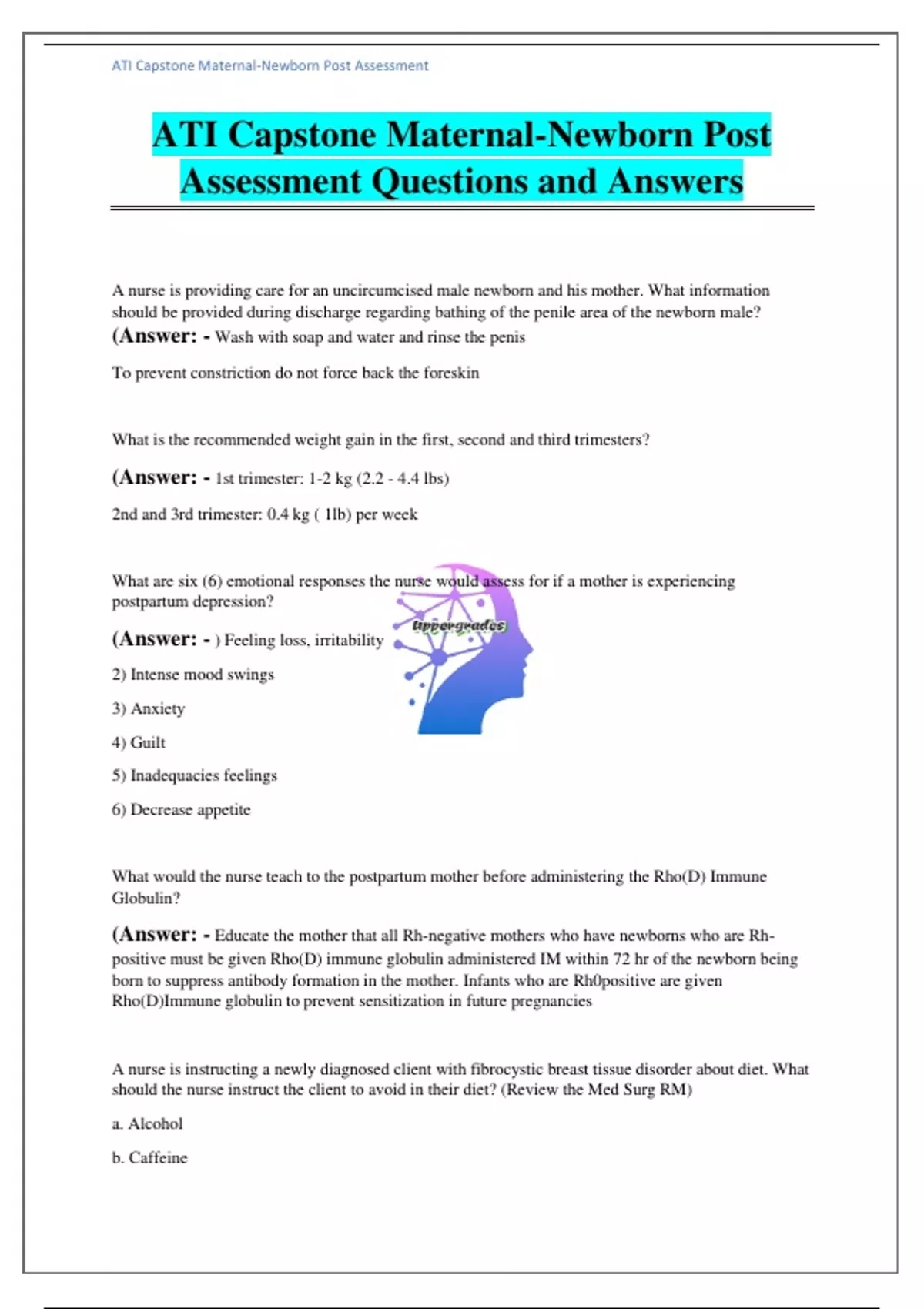 ATI Capstone Maternal-Newborn Post Assessment Questions and Answers