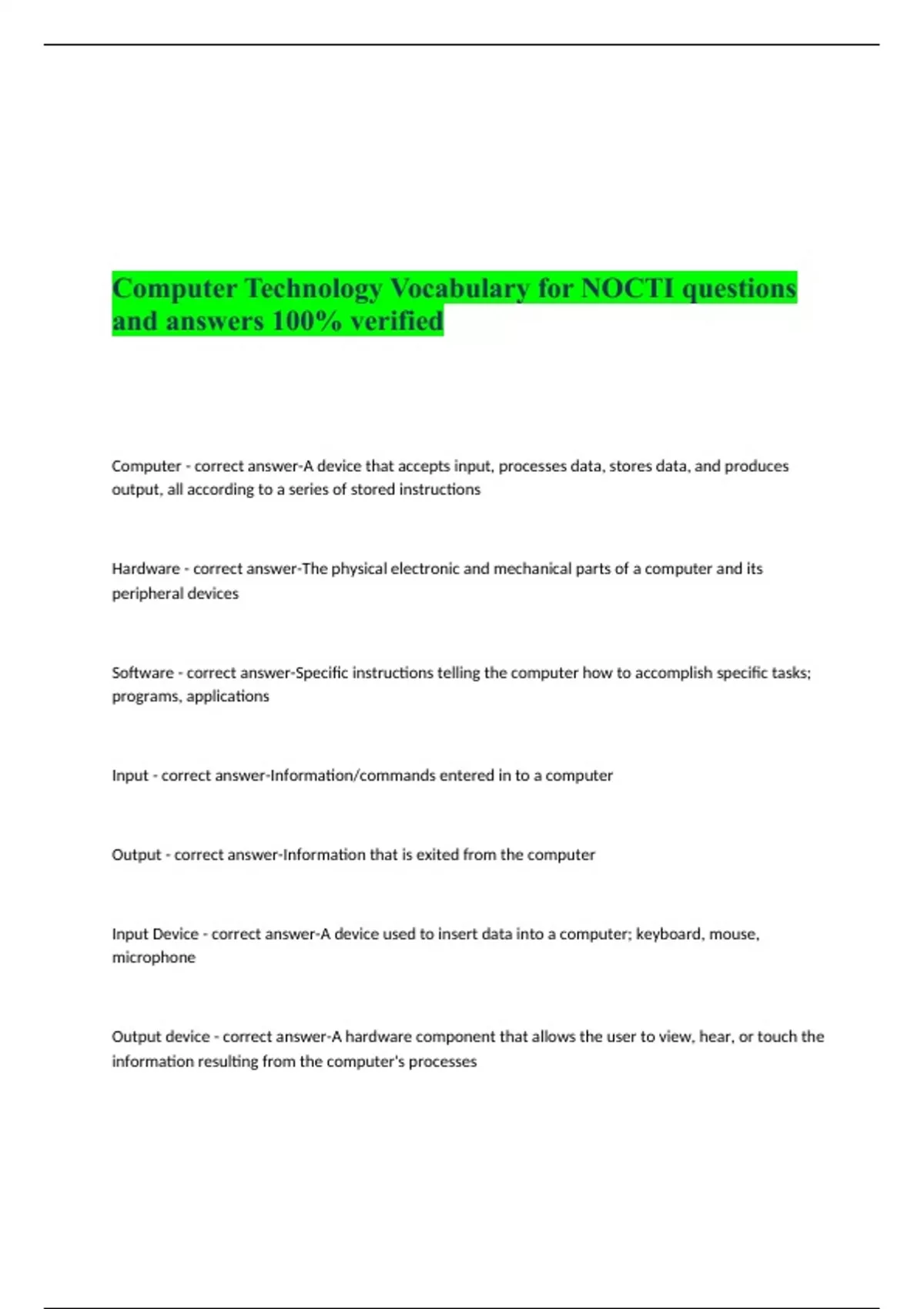 Computer Technology Vocabulary for NOCTI questions and answers 100% verified.