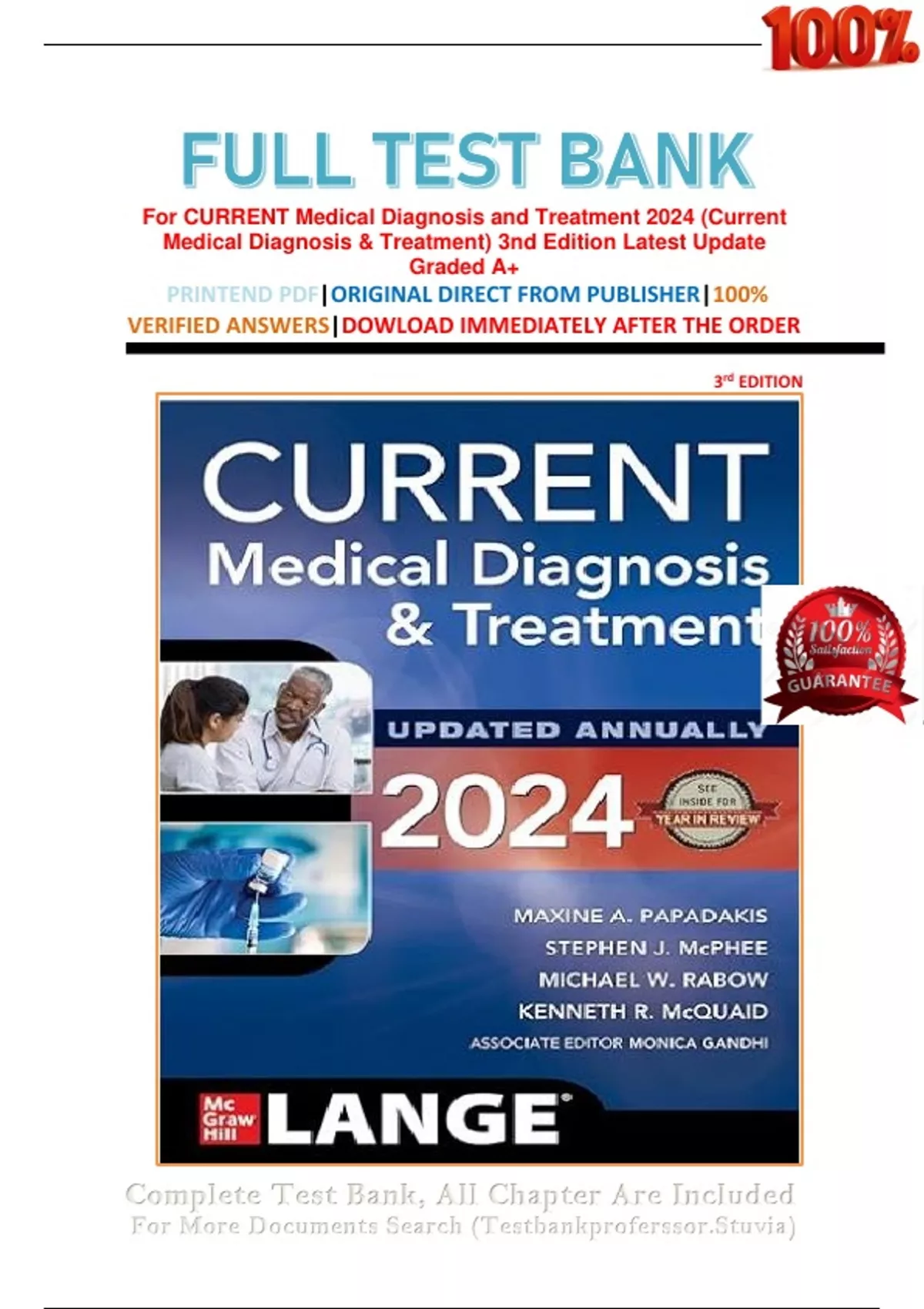 FULL TEST BANK For CURRENT Medical Diagnosis and Treatment 2024 (Current Medical Diagnosis & Treatment) 3nd Edition Latest Update Graded A+