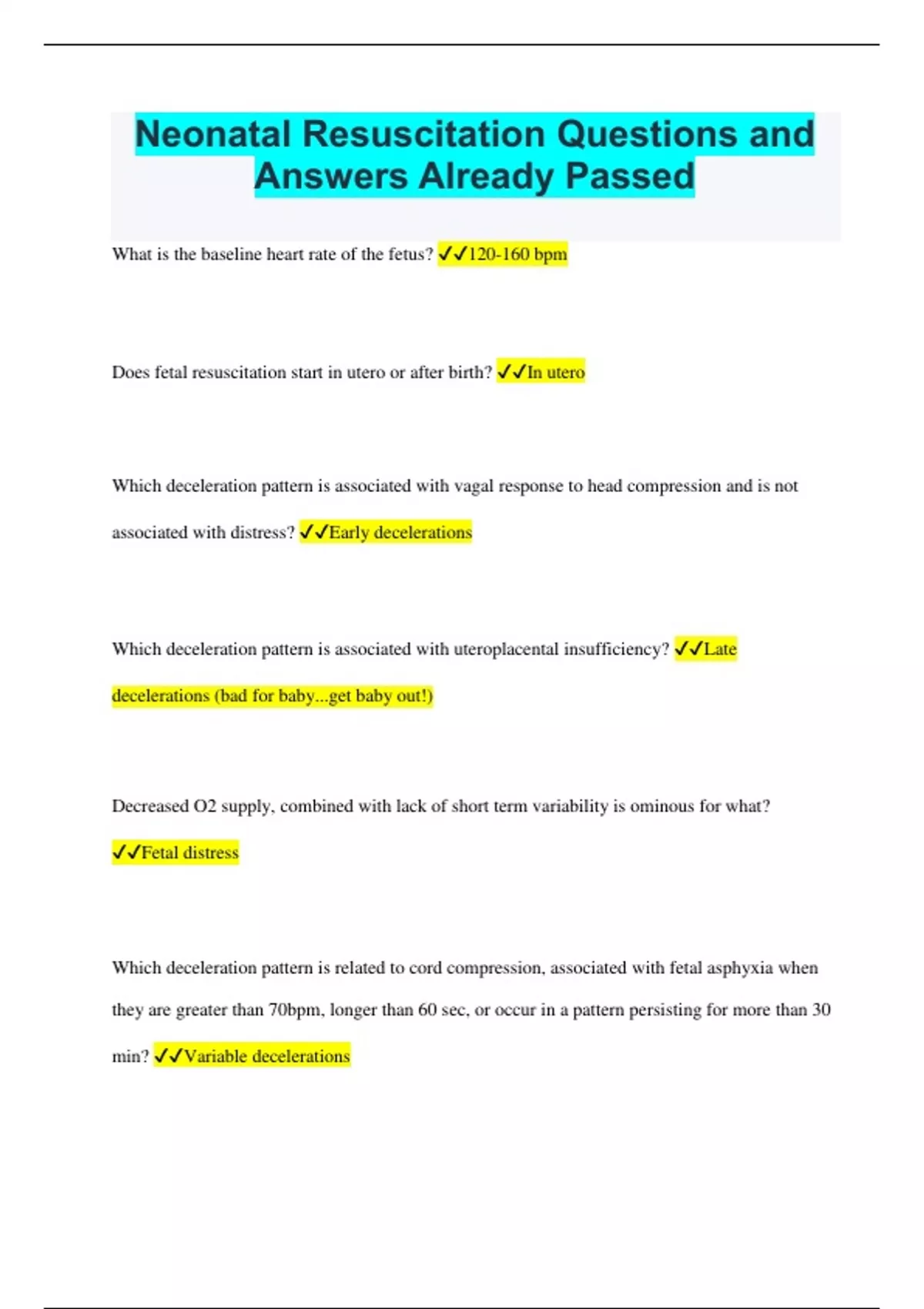 Neonatal Resuscitation Questions and Answers Already Passed